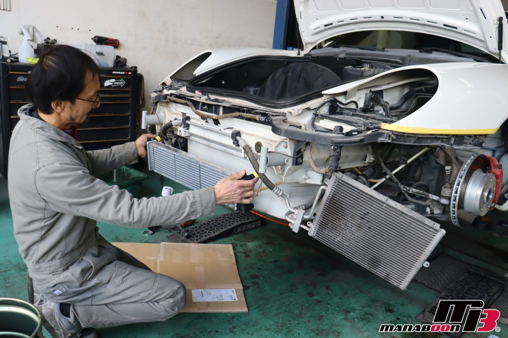 ヘッドライト、フロントバンパーを外します。 986 ボクスター ラジエター交換画像 986 ボクスター ラジエター交換画像 ラジエター、ラジエターホースを外します。 986 ボクスター ラジエター交換画像 986 ボクスター ラジエター交換画像 986 ボクスター ラジエター交換画像 交換する、ラジエターとラジエターホースです。 986 ボクスター ラジエター交換画像 ラジエター、ラジエターホースを取り付けます。 986 ボクスター ラジエター交換画像 986 ボクスター ラジエター交換画像 986 ボクスター ラジエター交換画像 986 ボクスター ラジエター交換画像 986 ボクスター ラジエター交換画像 ラジエターの交換完了です。 986 ボクスター ラジエター交換画像 フロントバンパーを取り付けます。 986 ボクスター ラジエター交換画像 986 ボクスター ラジエター交換画像 LLCを入れます。 986 ボクスター ラジエター交換画像 タイヤの空気圧と、ホイールのトルクチェックをして終了です。 986 ボクスター ラジエター交換画像 986 ボクスター ラジエター交換画像 また、お時間がある時にご覧ください。