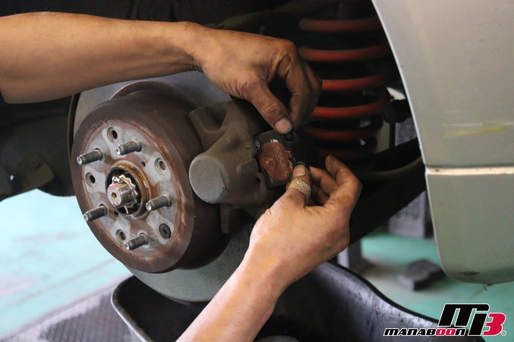 使用するオイルは、WAKO’S PRO STAGE-Sです。 アルテッツァ SXE10 車検整備画像 アルテッツァ SXE10 車検整備画像 アルテッツァ SXE10 車検整備画像 ブレーキパッドを交換します。