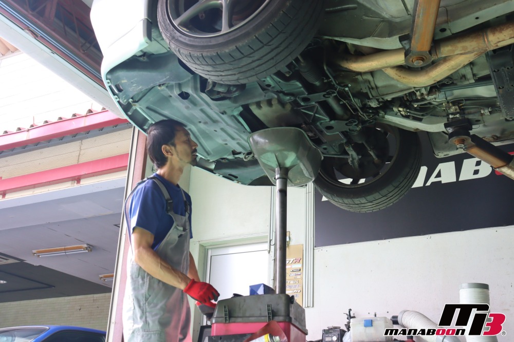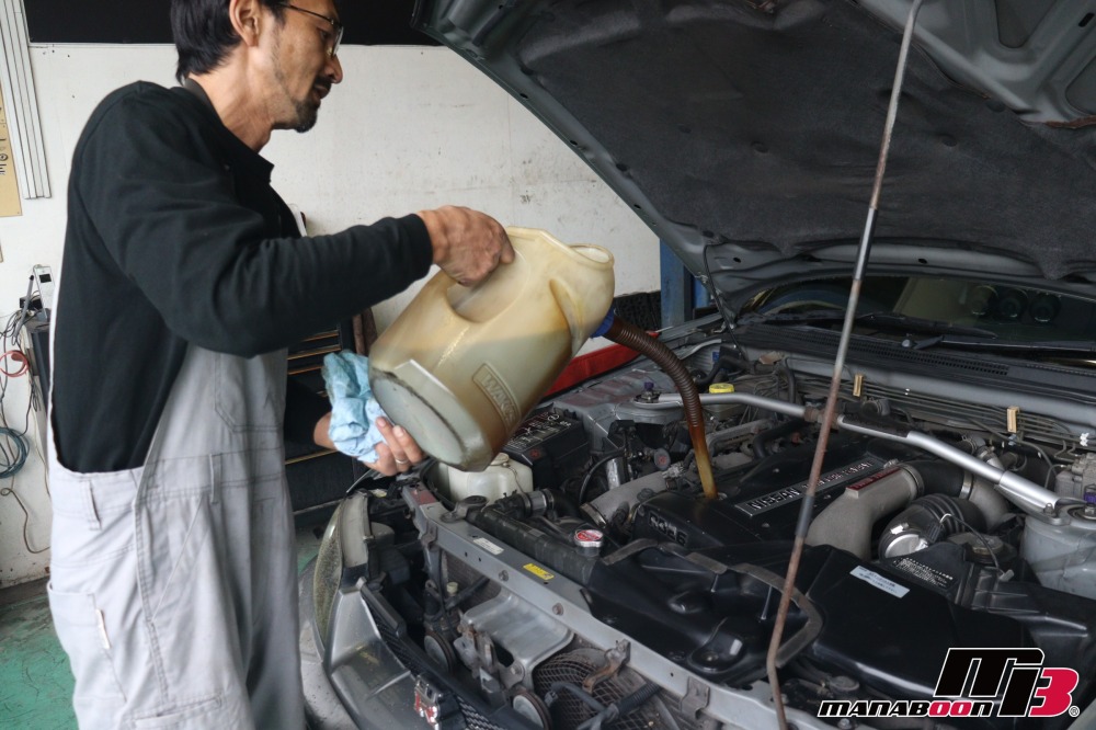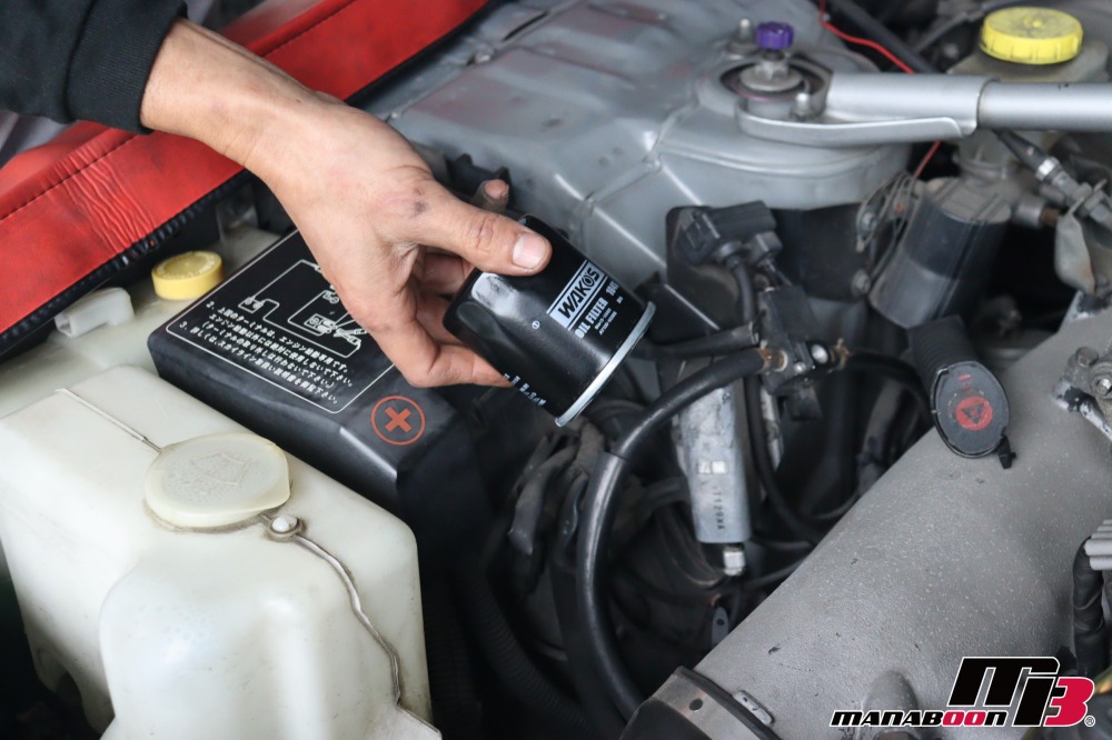 エンジンオイルを抜いて、オイルフィルターを交換します。