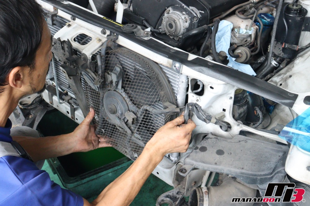 電動ファンを取り付けます。