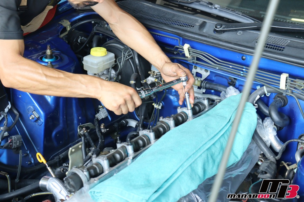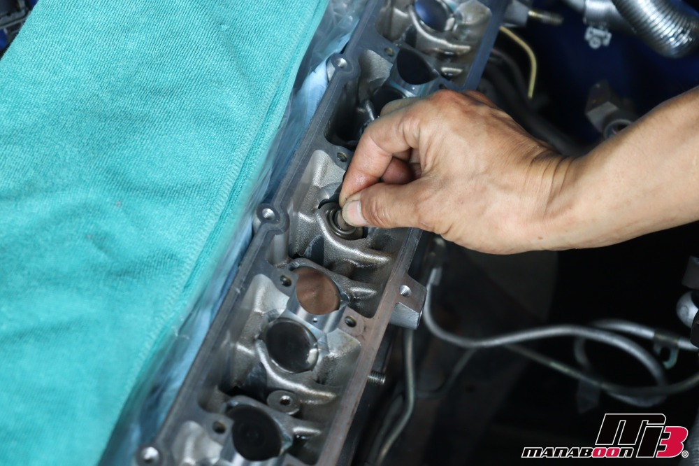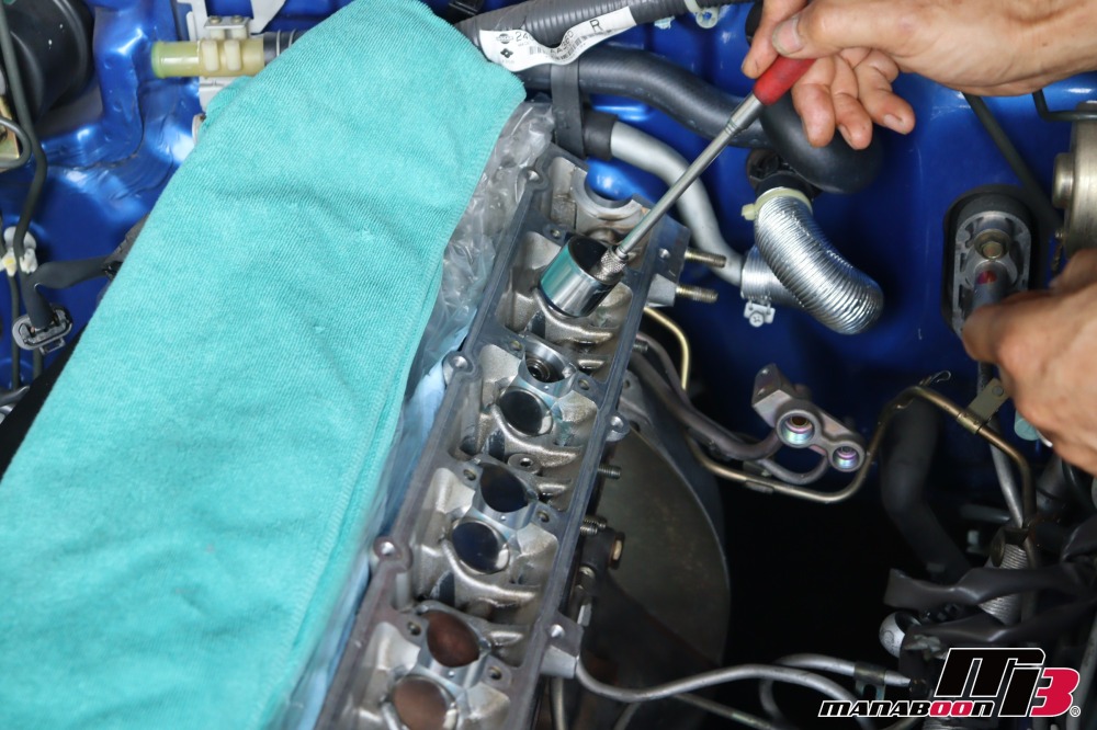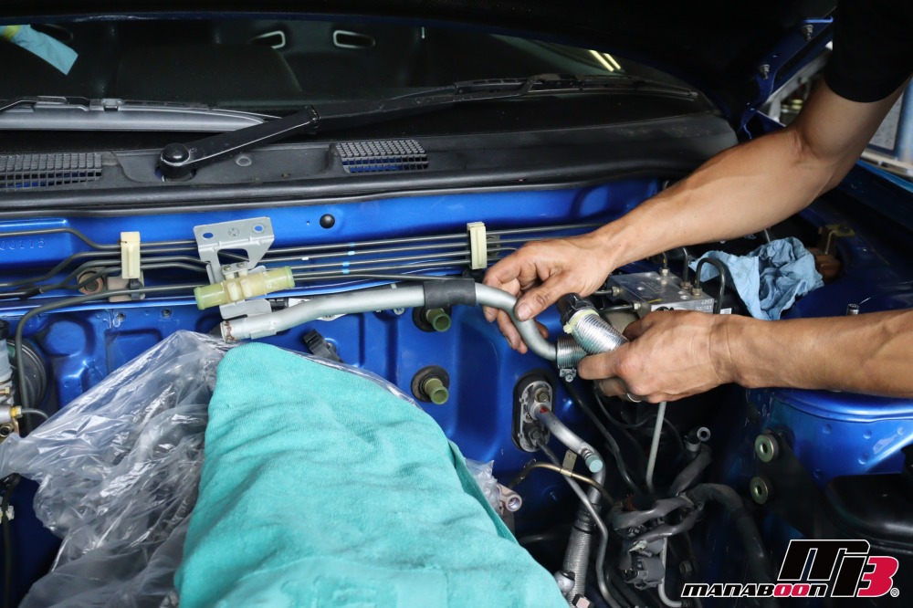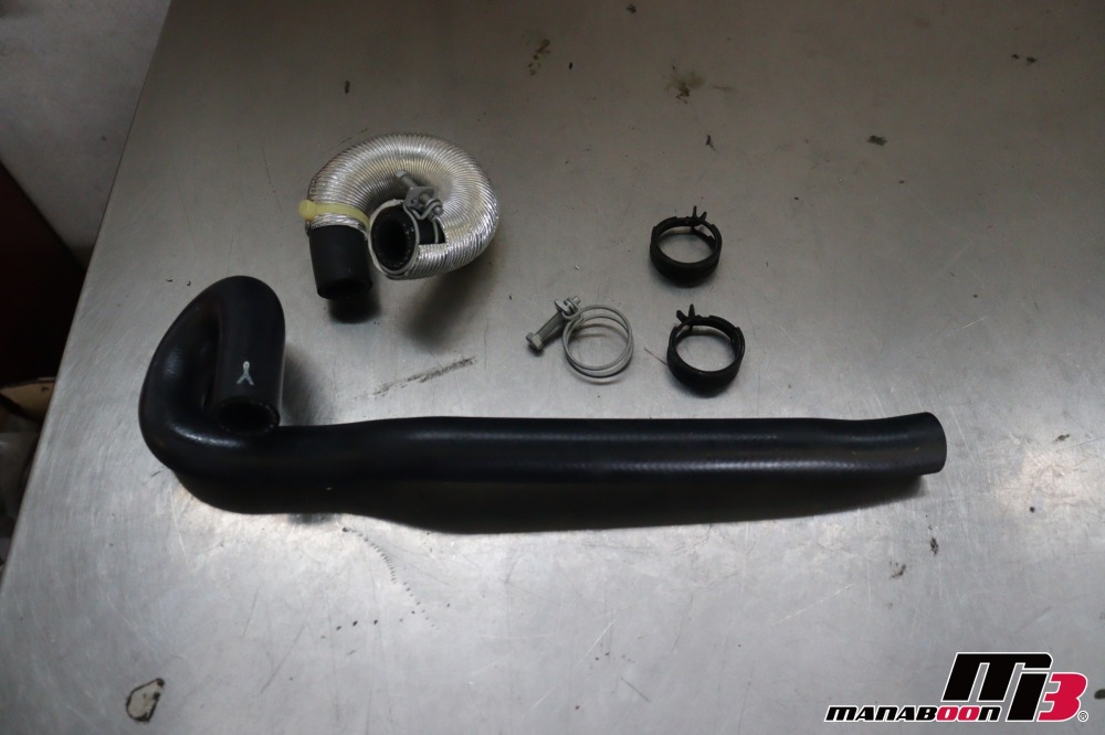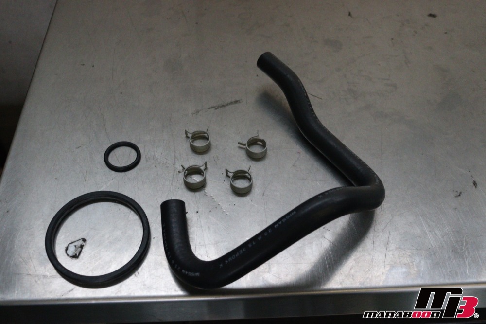 本日のブログも、BNR34の作業です。カムの調整は一度置いておいて、ヒーターホースを交換します。
