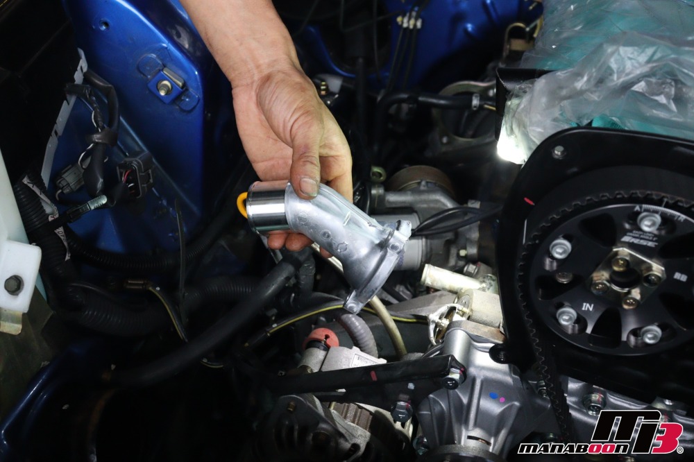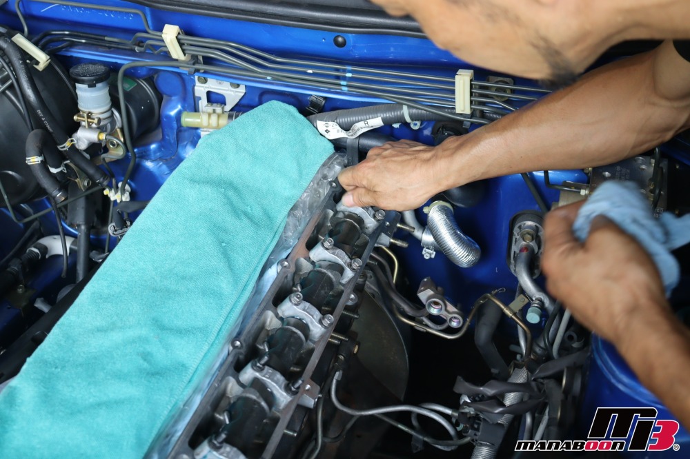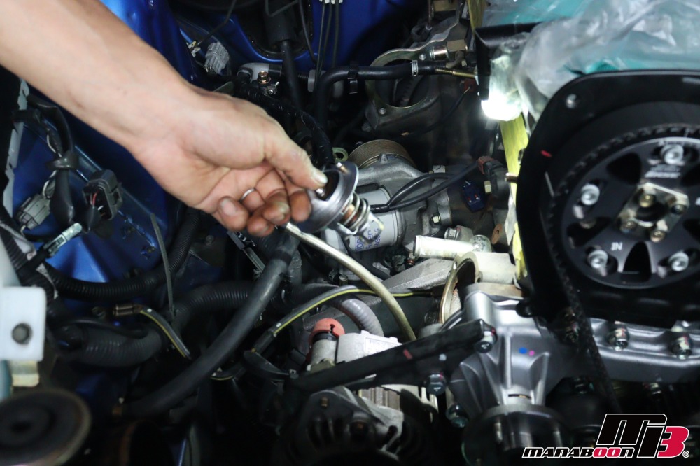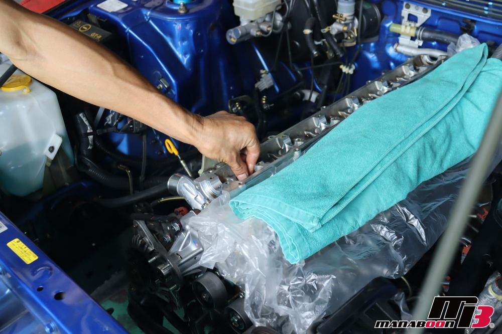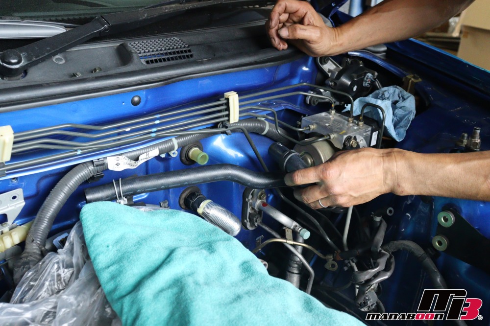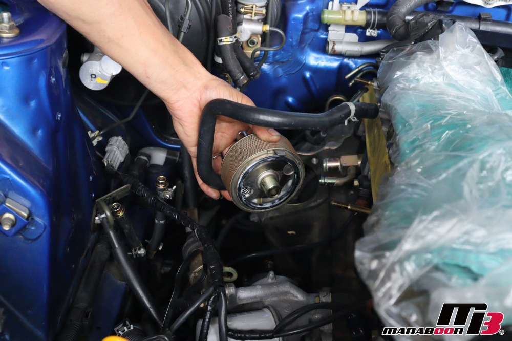 本日のブログも、BNR34の作業です。カムの調整は一度置いておいて、ヒーターホースを交換します。