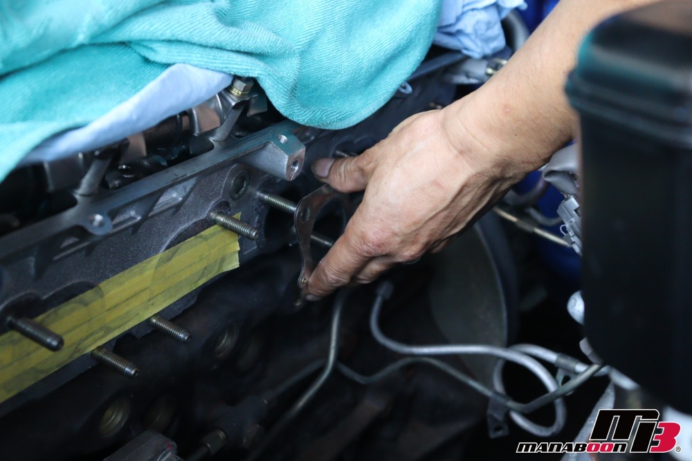 引き続き、タービン交換の作業をします。エキマニのガスケットを取り付けます。