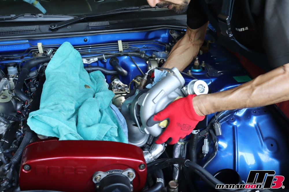 リア側のタービン、エキマニを取り付けます。