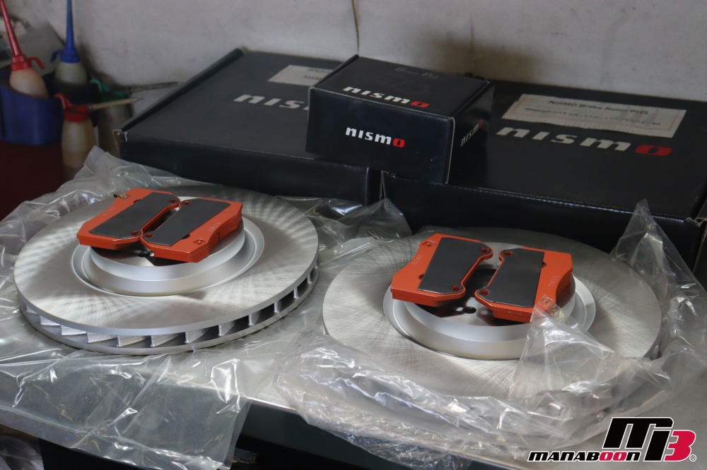 交換するフロントブレーキローターと、パッドです。使用するのは、共にNISMOです。