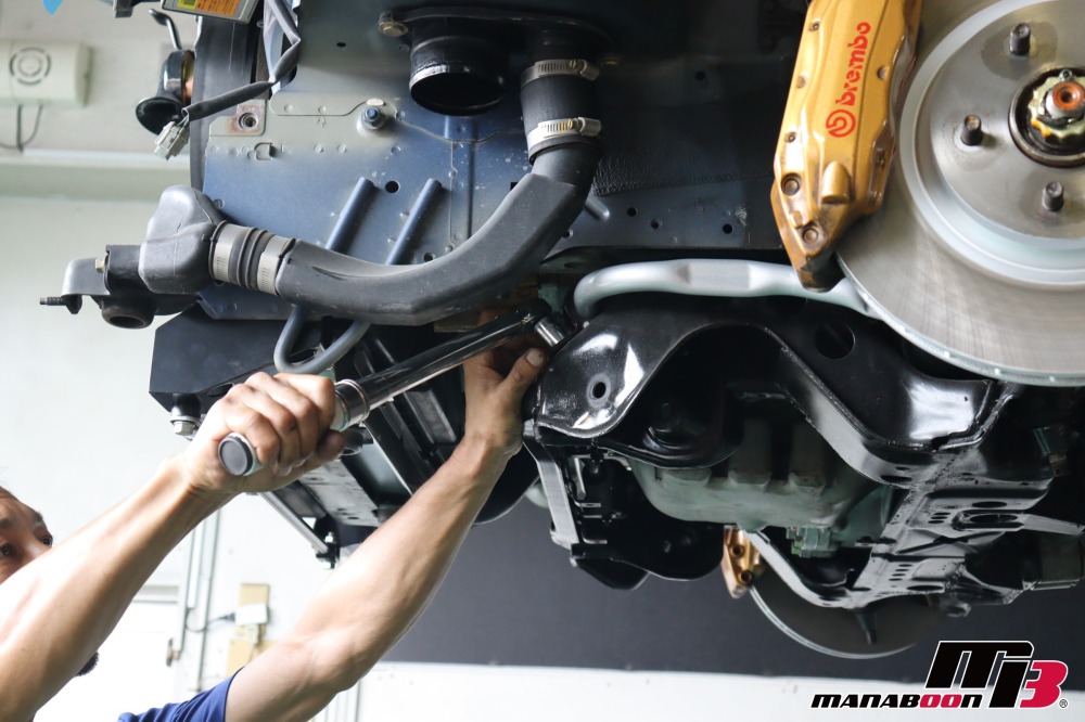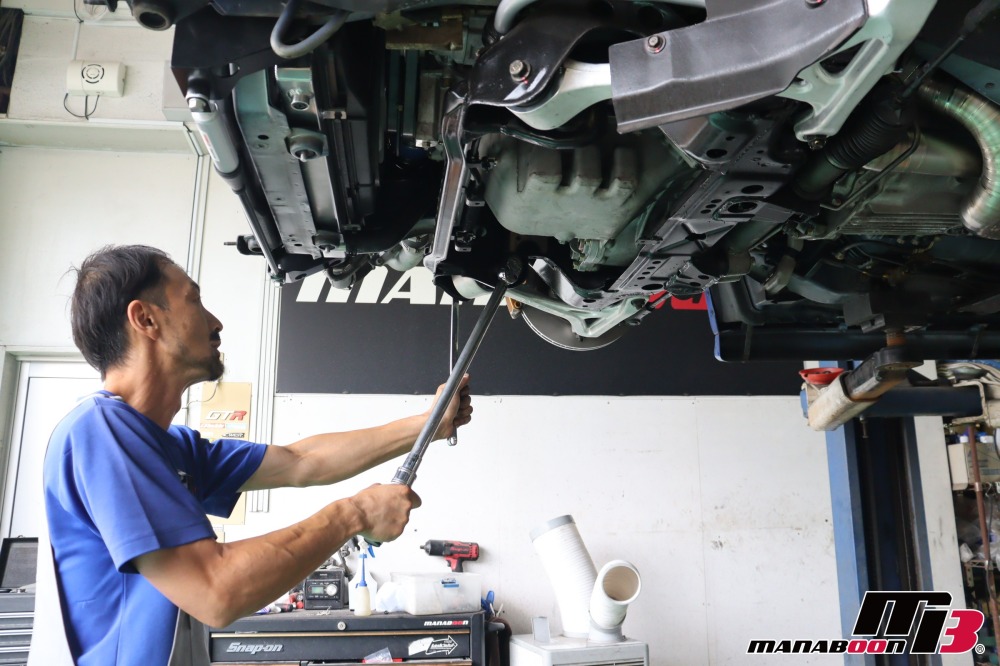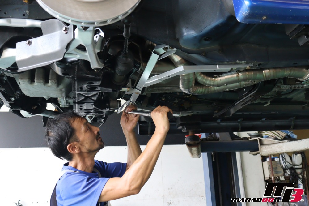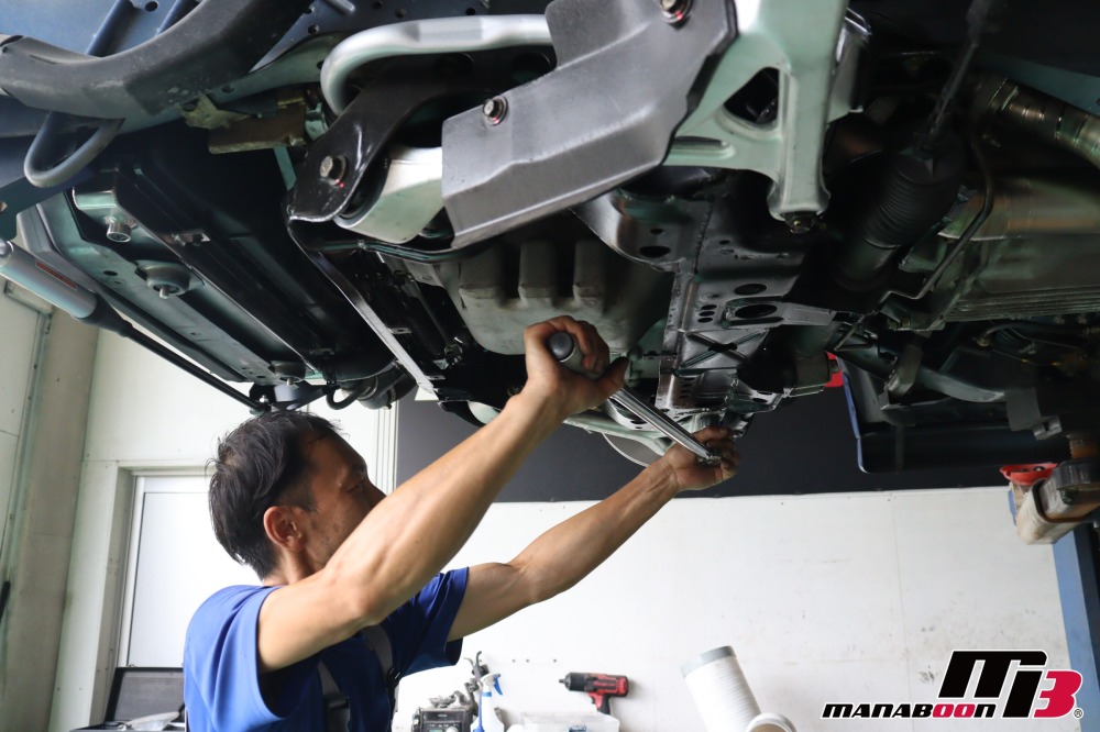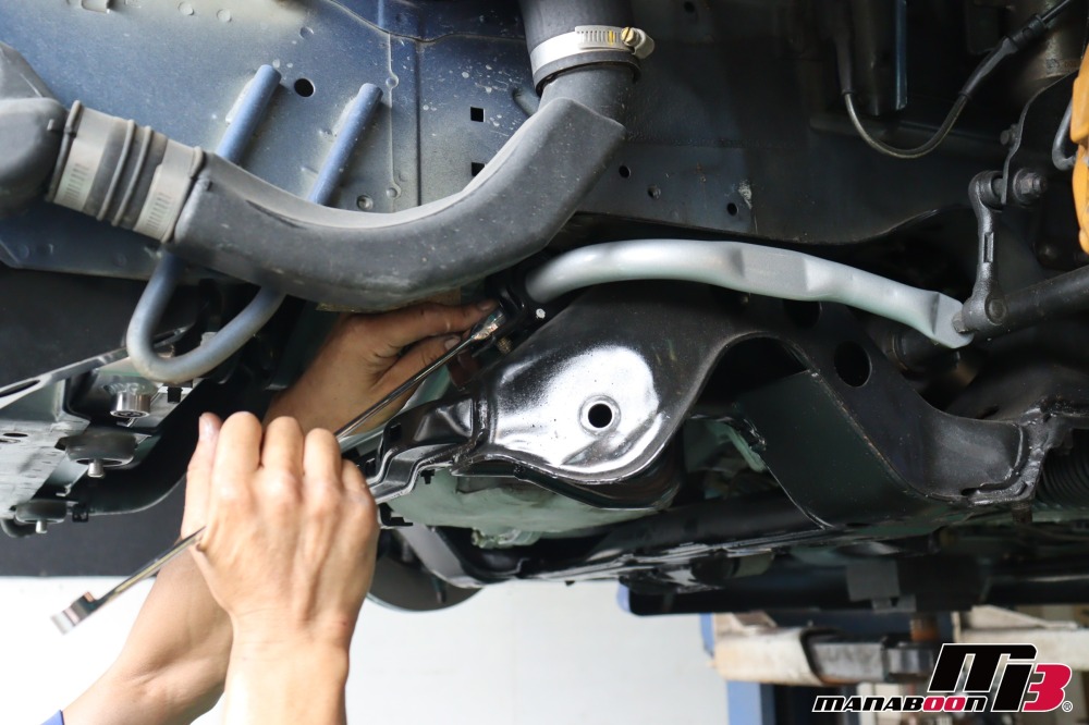 NISMOフロアアンダーバーを取り付けます。