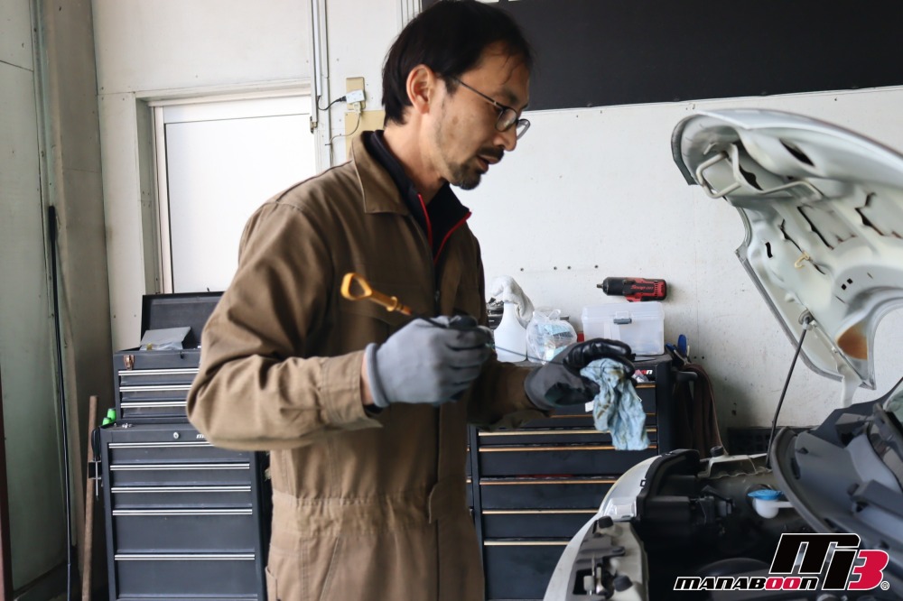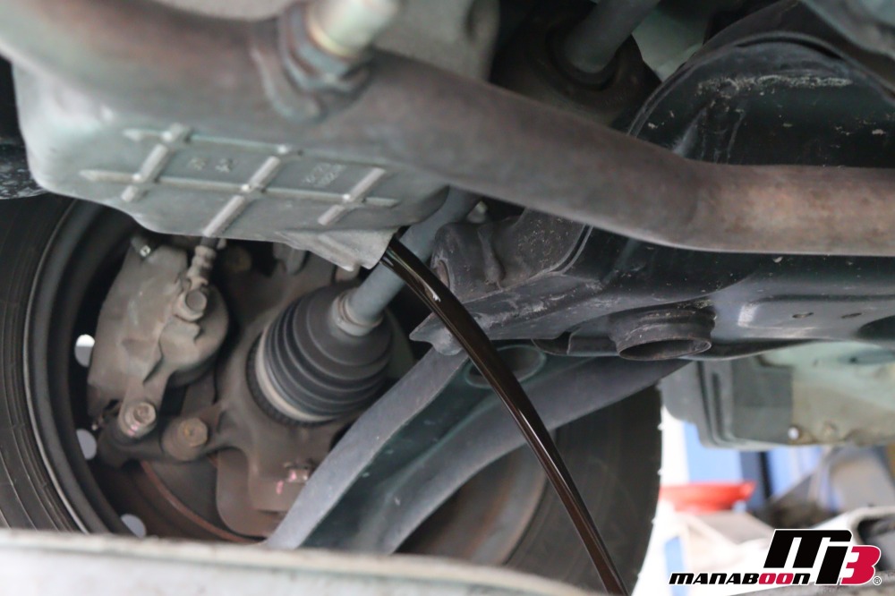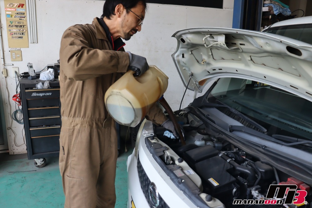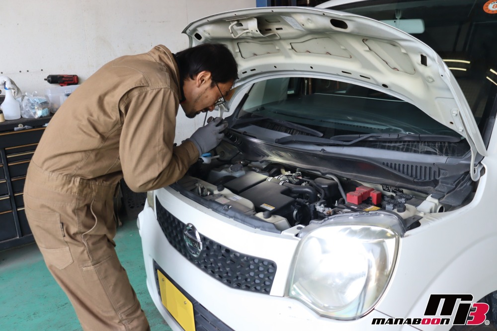 代車に加わります、モコの点検をしていきます。 モコ 入庫 油脂類交換画像 エンジンルーム、下回りの点検をします。 モコ 入庫 油脂類交換画像 モコ 入庫 油脂類交換画像 モコ 入庫 油脂類交換画像 エンジンオイルを抜きます。 モコ 入庫 油脂類交換画像 エンジンオイルを入れます。