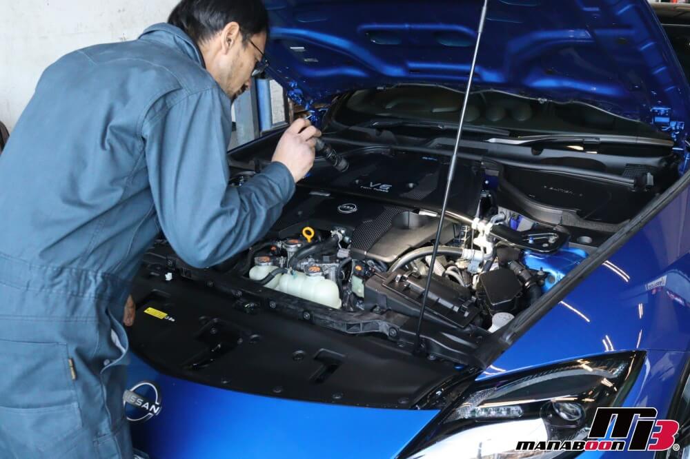 本日は、入庫しました、フェアレディZ RZ34の点検を行います。