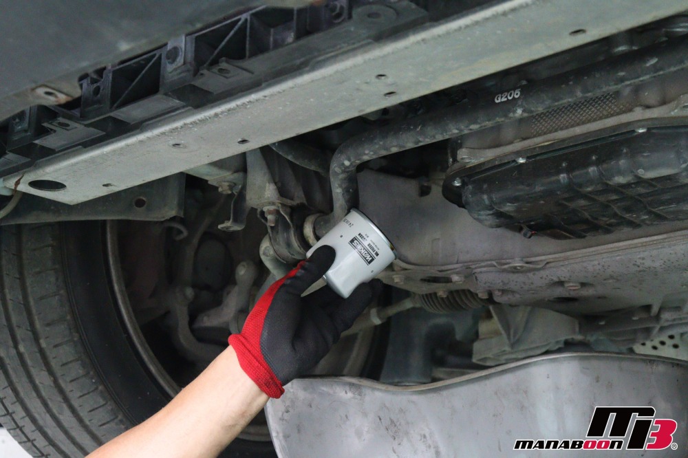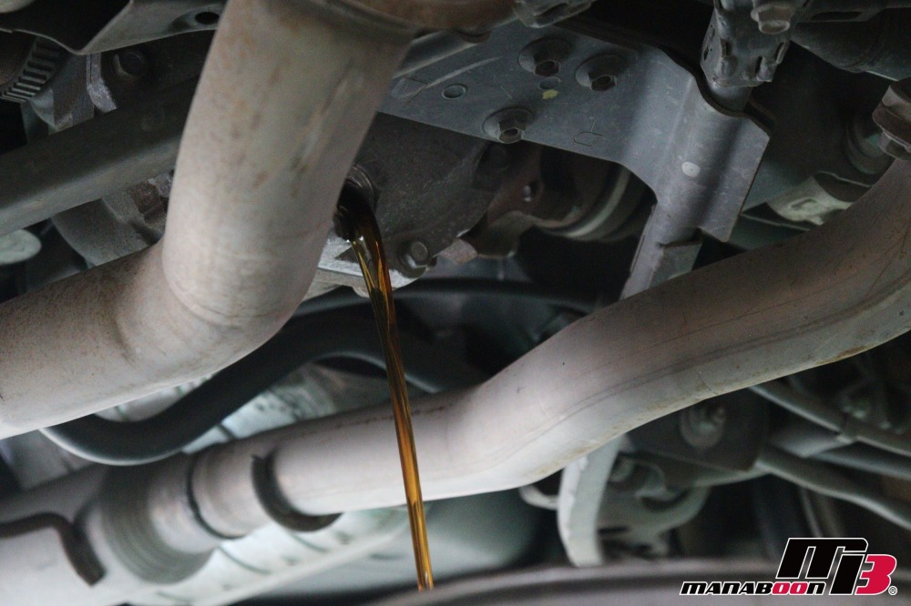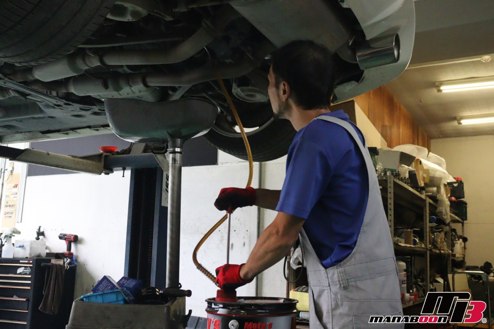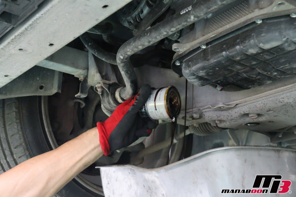エンジンオイルを抜いて、オイルフィルターを交換します。