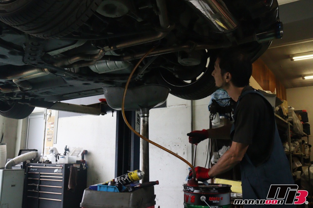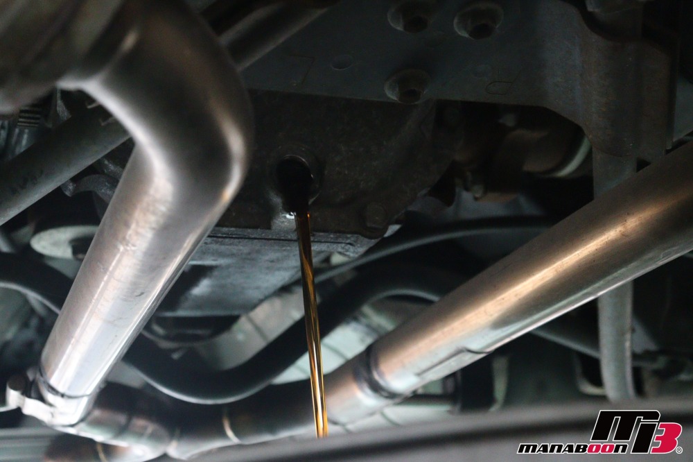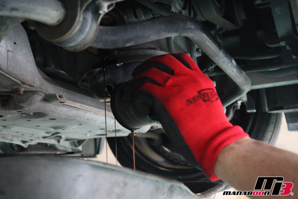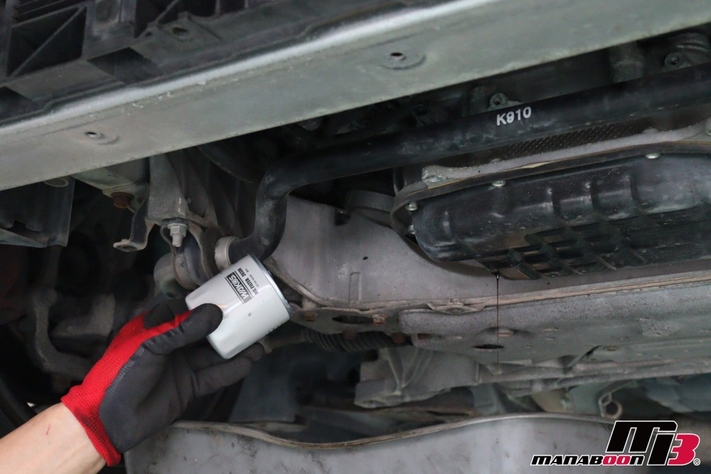 エンジンオイルを抜いて、オイルフィルターを交換します。