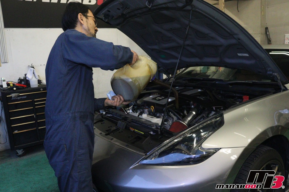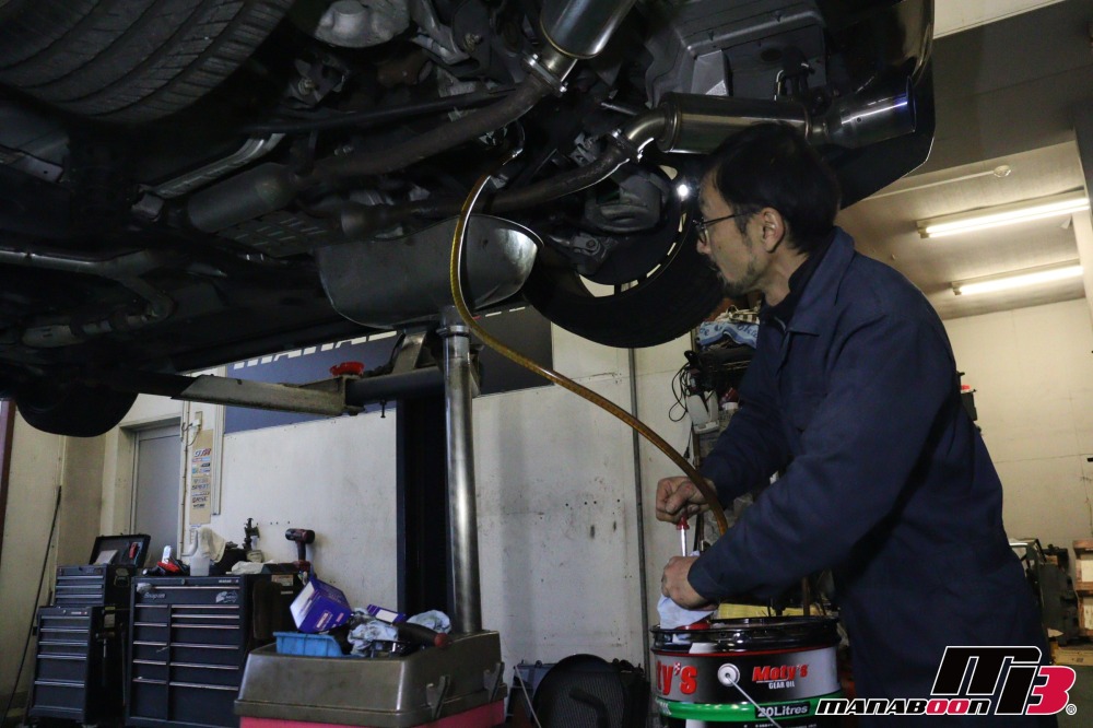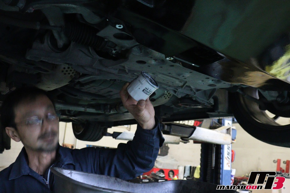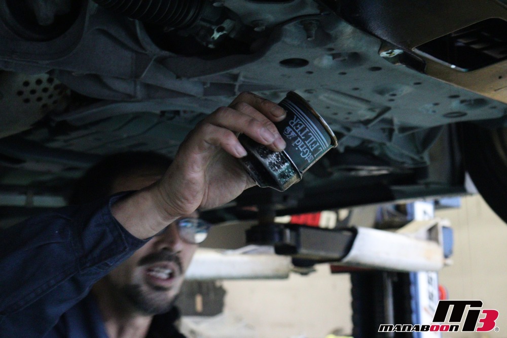エンジンオイルを抜いて、オイルフィルターを交換します。