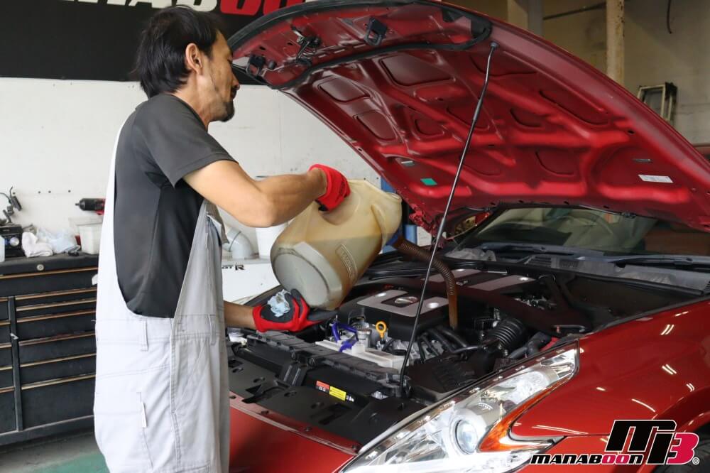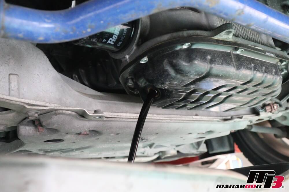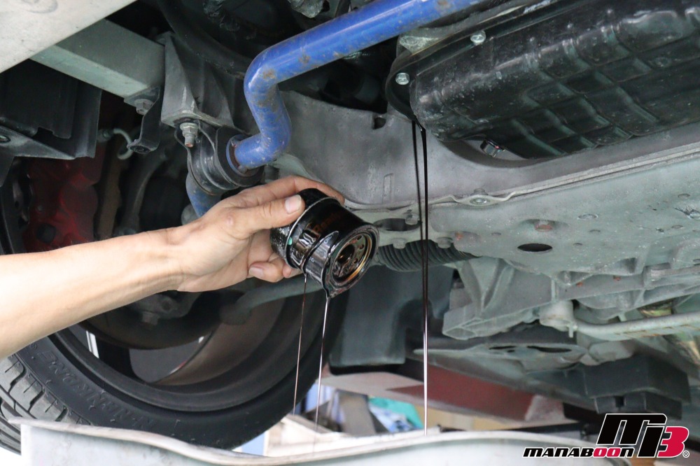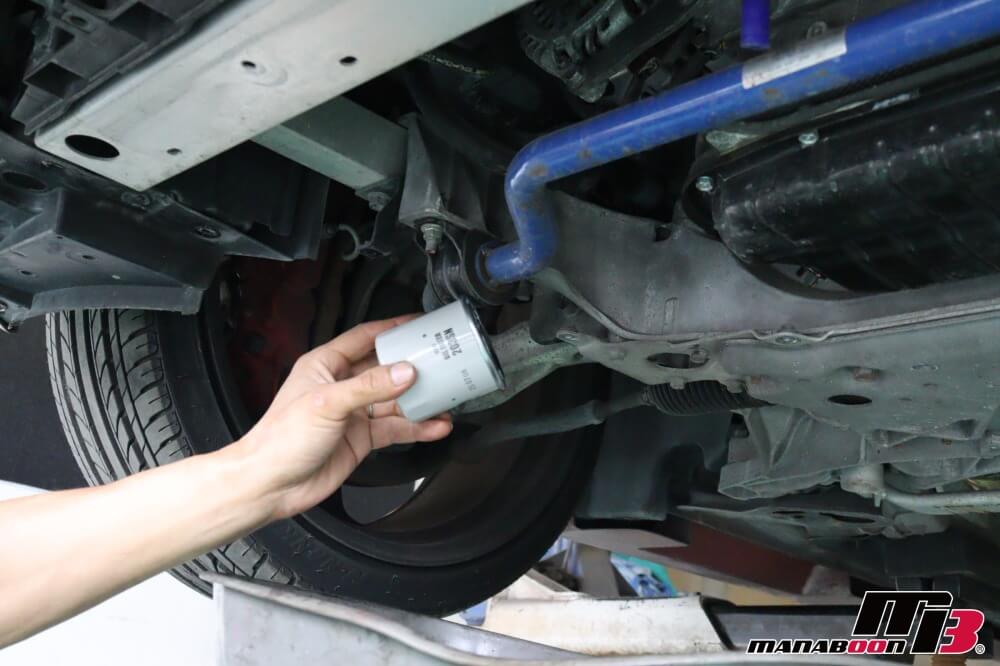 エンジンオイルを抜いて、オイルフィルターを交換します。