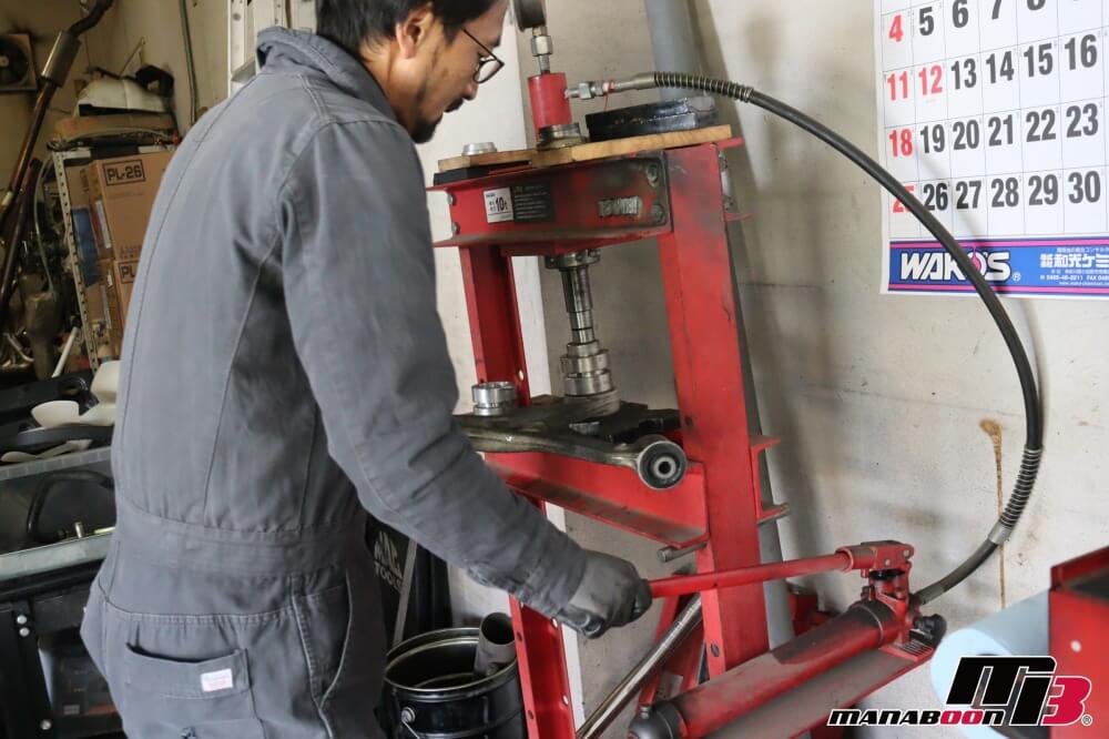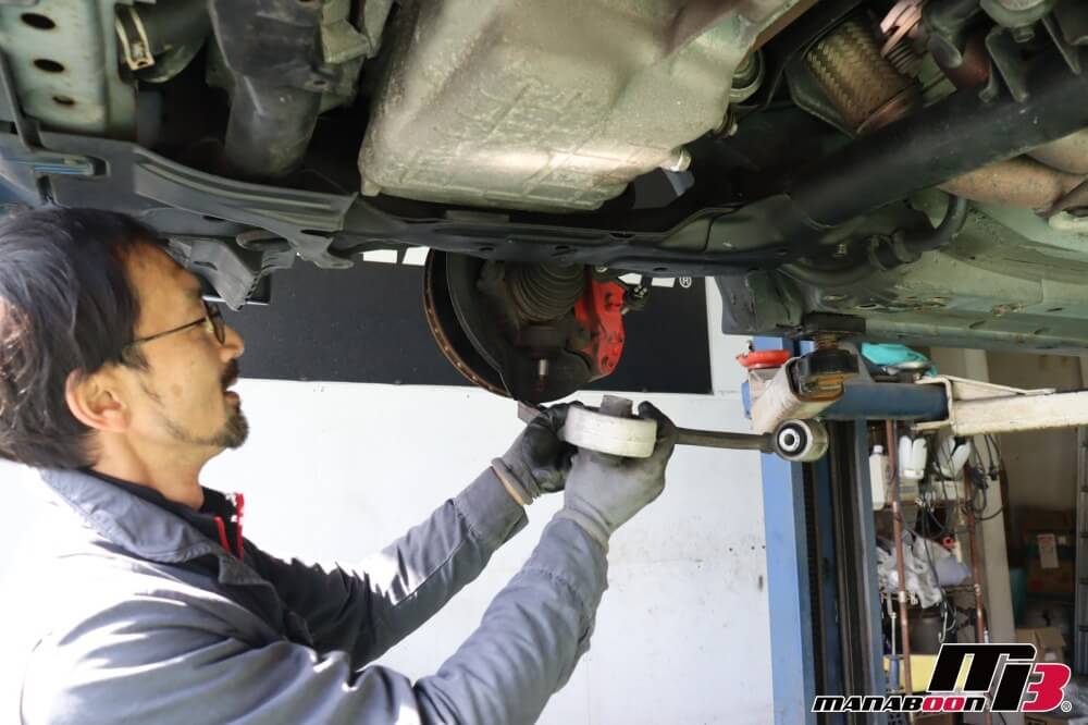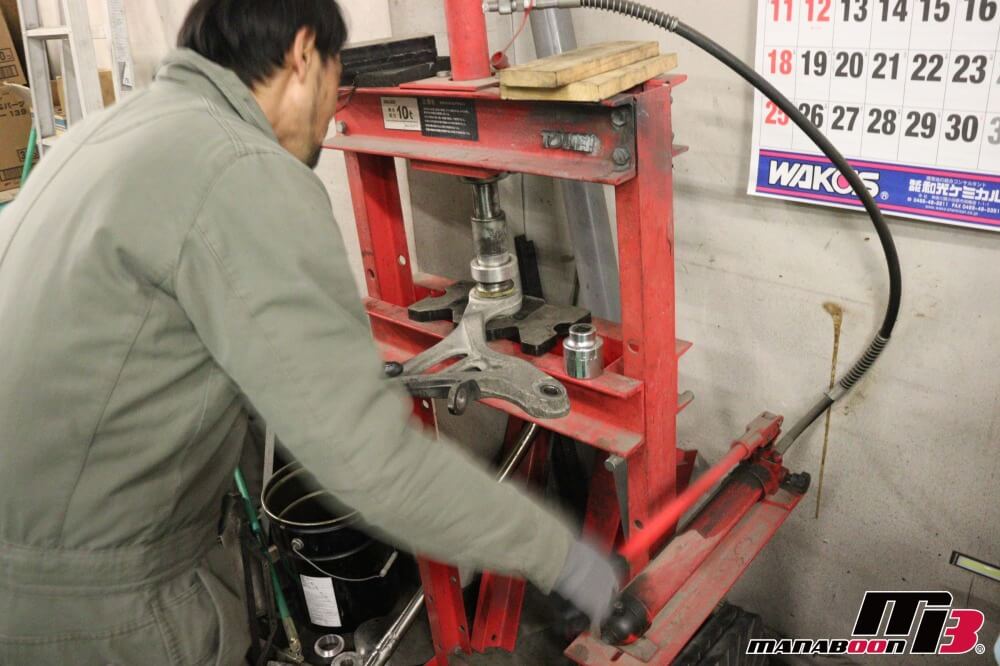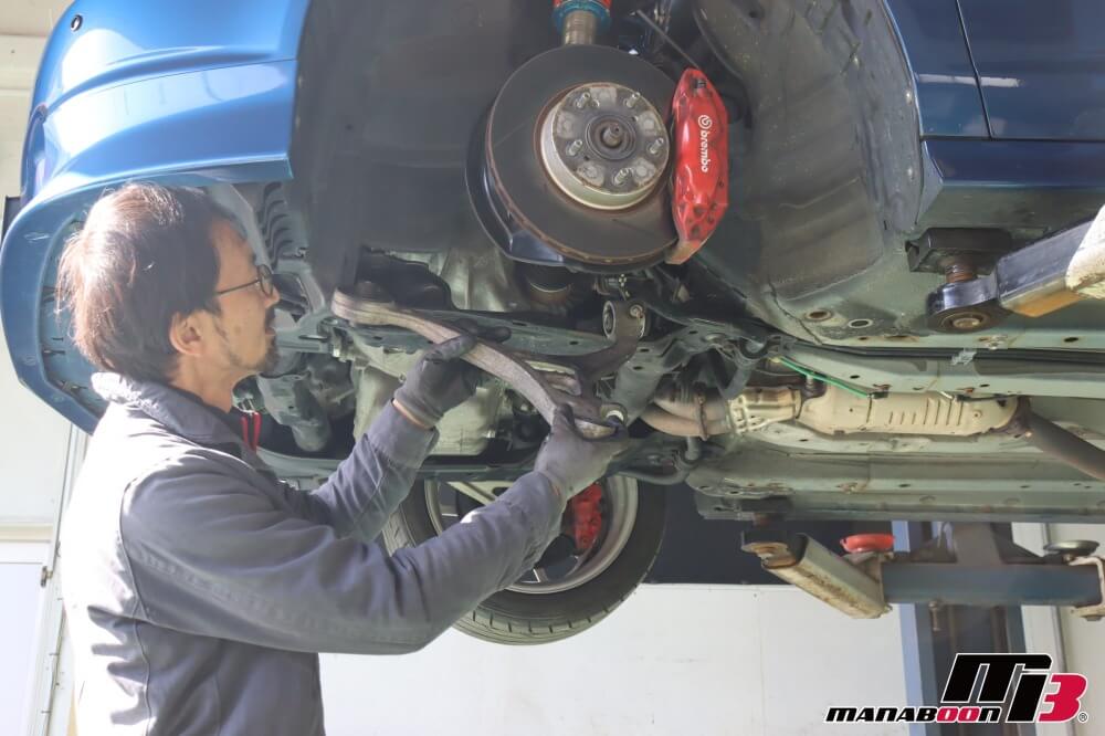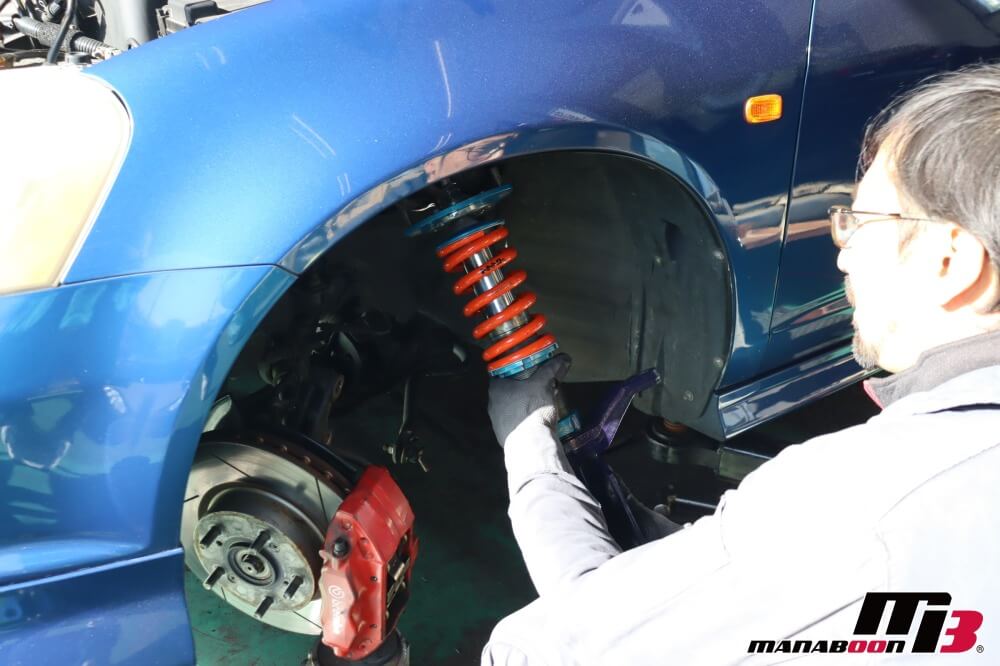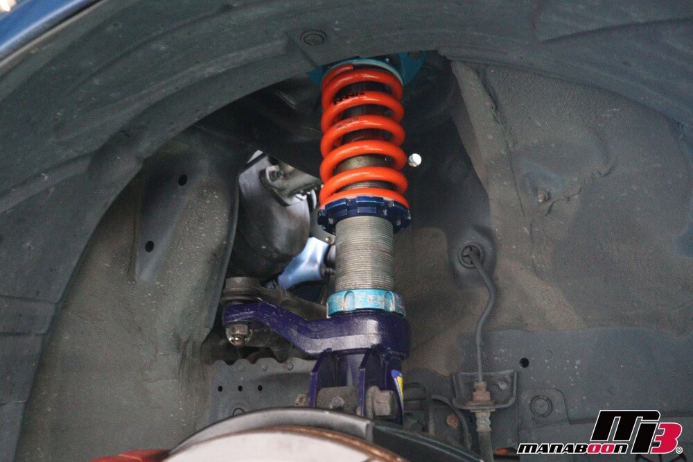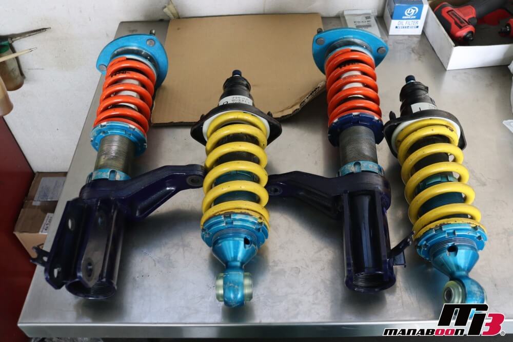 フロントのブッシュ打ち替え、車高調取り付けは終了です。