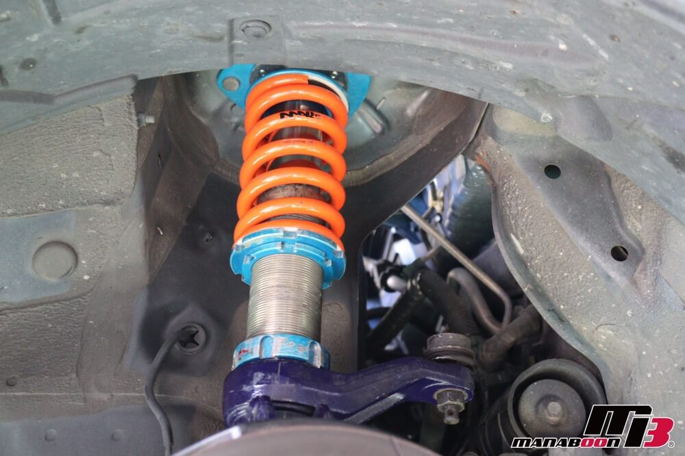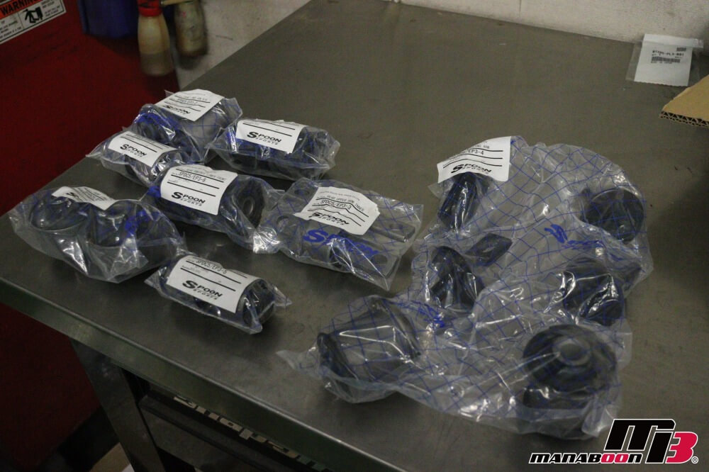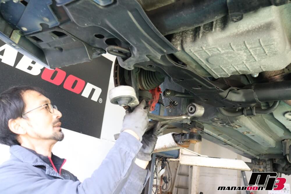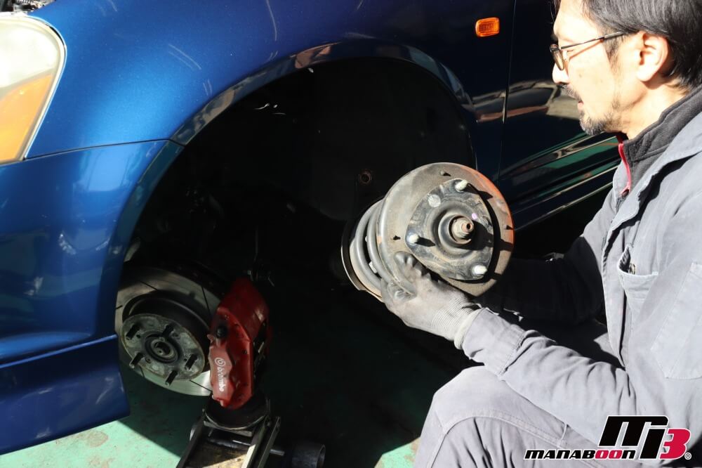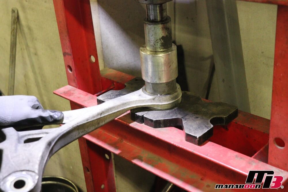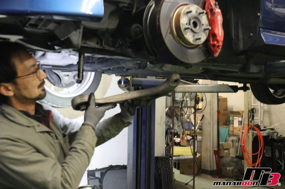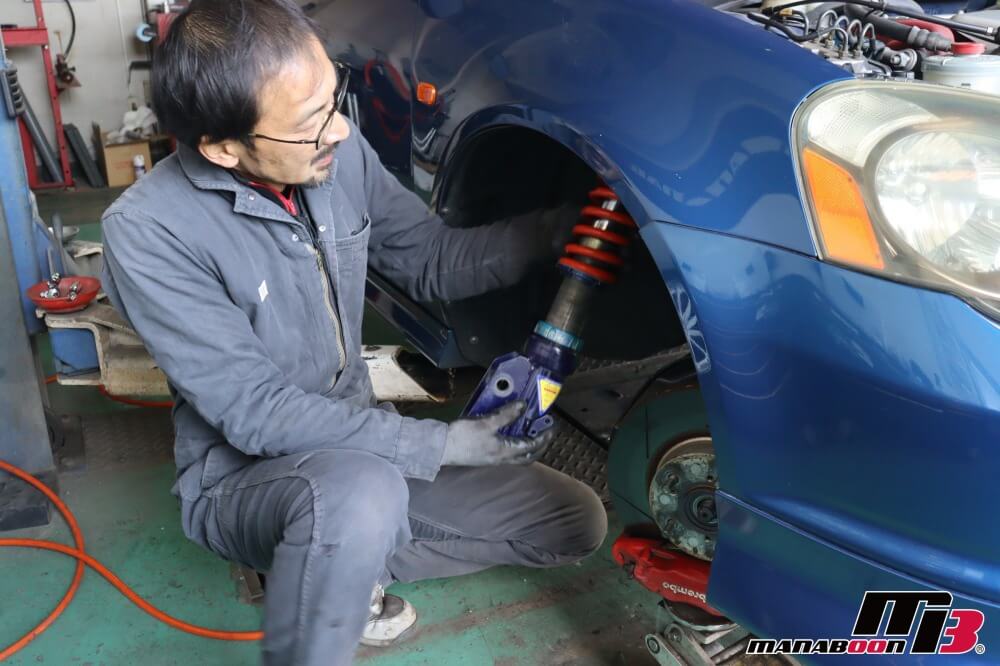 フロントのブッシュ打ち替え、車高調取り付けは終了です。
