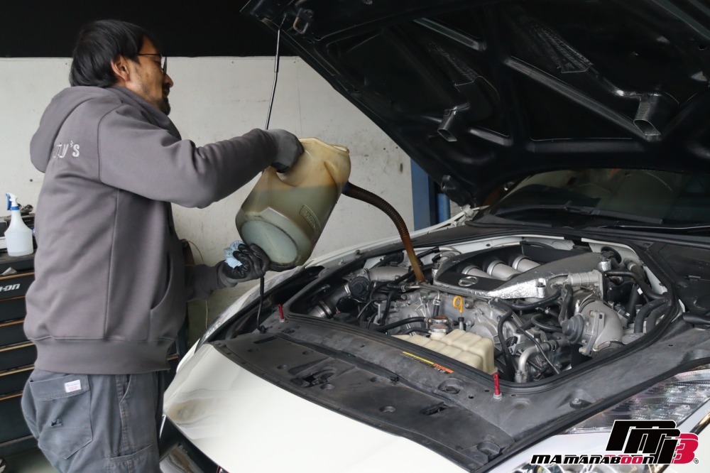 いつも整備のご依頼、ありがとうございます。 R35GTR 車検整備 オイル交換画像 エンジンルーム、下回りの点検をします。 R35GTR 車検整備 オイル交換画像 R35GTR 車検整備 オイル交換画像 R35GTR 車検整備 オイル交換画像 エンジンオイルを抜きます。 R35GTR 車検整備 オイル交換画像 使用するエンジンオイルは、MOTY’Sになります。 R35GTR 車検整備 オイル交換画像 オイルフィルターを交換します。 R35GTR 車検整備 オイル交換画像 R35GTR 車検整備 オイル交換画像 エンジンオイルを入れます。 R35GTR 車検整備 オイル交換画像 R35GTR 車検整備 オイル交換画像 足回り、ブレーキ周りの点検をします。 R35GTR 車検整備 オイル交換画像 R35GTR 車検整備 オイル交換画像 排ガス、マフラー音量のチェックをします。 R35GTR 車検整備 オイル交換画像 R35GTR 車検整備 オイル交換画像 下回りの洗浄をします。 R35GTR 車検整備 オイル交換画像 R35GTR 車検整備 オイル交換画像 R35GTR 車検整備 オイル交換画像 タイヤの空気圧、ホイールのトルクチェックをして終了です。 R35GTR 車検整備 オイル交換画像 R35GTR 車検整備 オイル交換画像 また、お時間がある時にご覧ください。