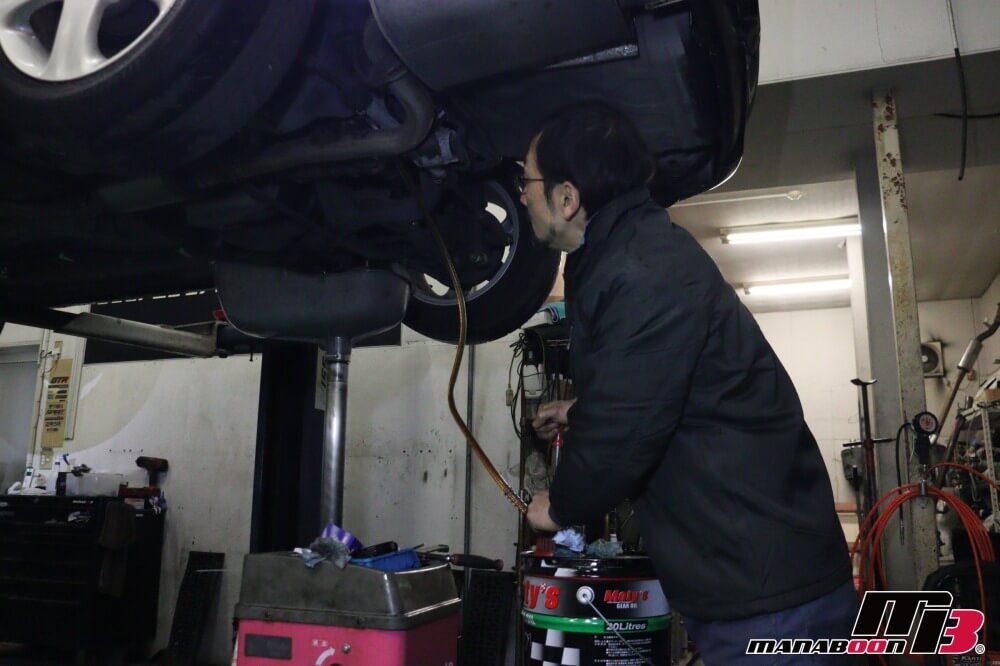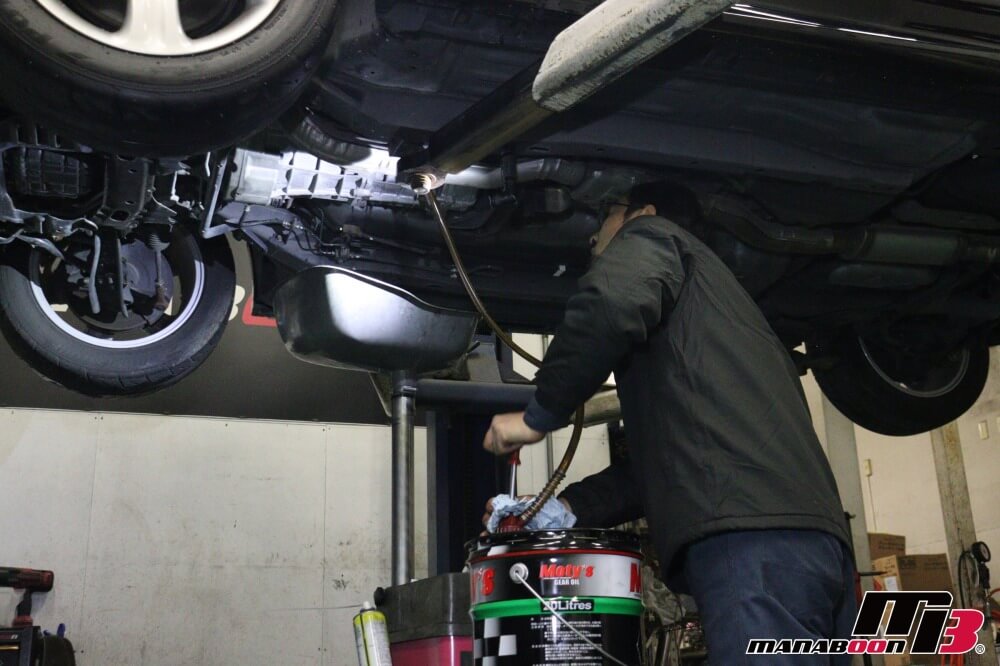 使用するのは、MOTY’S M407 85W-140です。 シルビア S15 納車前点検整備画像 ミッションオイルを入れます。