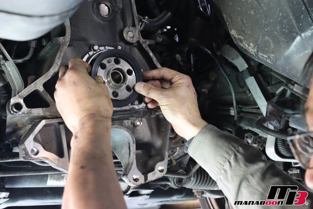いつも整備のご依頼、ありがとうございます。 スカイラインGT-R BCNR33 ニスモクラッチ交換画像 ミッションを下ろします。 スカイラインGT-R BCNR33 ニスモクラッチ交換画像 スカイラインGT-R BCNR33 ニスモクラッチ交換画像 スカイラインGT-R BCNR33 ニスモクラッチ交換画像 クラッチを外します。 スカイラインGT-R BCNR33 ニスモクラッチ交換画像 フライホイールを外します。 スカイラインGT-R BCNR33 ニスモクラッチ交換画像 クランクシールを外します。 スカイラインGT-R BCNR33 ニスモクラッチ交換画像 スターターを外します。 スカイラインGT-R BCNR33 ニスモクラッチ交換画像 清掃します。 スカイラインGT-R BCNR33 ニスモクラッチ交換画像 交換する、クランクシールとパイロットブッシュです。 スカイラインGT-R BCNR33 ニスモクラッチ交換画像 クランクシールを取り付けます。 スカイラインGT-R BCNR33 ニスモクラッチ交換画像 パイロットブッシュをつけます。 スカイラインGT-R BCNR33 ニスモクラッチ交換画像 交換するスターターです。 スカイラインGT-R BCNR33 ニスモクラッチ交換画像 スターターを取り付けます。 スカイラインGT-R BCNR33 ニスモクラッチ交換画像 お客様のご要望で取り付ける、NISMOスポーツクラッチキットになります。 スカイラインGT-R BCNR33 ニスモクラッチ交換画像 プレートをつけて、フライホイールを取り付けます。 スカイラインGT-R BCNR33 ニスモクラッチ交換画像 スカイラインGT-R BCNR33 ニスモクラッチ交換画像 スカイラインGT-R BCNR33 ニスモクラッチ交換画像 クラッチディスクとクラッチカバーを取り付けます。 スカイラインGT-R BCNR33 ニスモクラッチ交換画像 スカイラインGT-R BCNR33 ニスモクラッチ交換画像 スカイラインGT-R BCNR33 ニスモクラッチ交換画像 レリーズベアリングを交換して、レリーズフォークを取り付けます。 スカイラインGT-R BCNR33 ニスモクラッチ交換画像 スカイラインGT-R BCNR33 ニスモクラッチ交換画像 ミッションを戻します。 スカイラインGT-R BCNR33 ニスモクラッチ交換画像 スカイラインGT-R BCNR33 ニスモクラッチ交換画像 スカイラインGT-R BCNR33 ニスモクラッチ交換画像 シフト周りを戻します。 スカイラインGT-R BCNR33 ニスモクラッチ交換画像 スカイラインGT-R BCNR33 ニスモクラッチ交換画像 スカイラインGT-R BCNR33 ニスモクラッチ交換画像 タイヤの空気圧、ホイールのトルクチェックをして終了です。 スカイラインGT-R BCNR33 ニスモクラッチ交換画像 スカイラインGT-R BCNR33 ニスモクラッチ交換画像 また、お時間がある時にご覧ください。