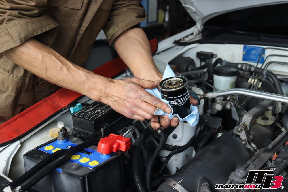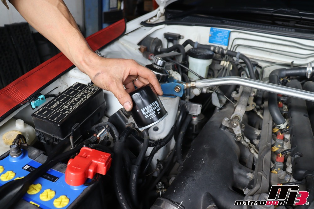 エンジンオイルを抜いて、オイルフィルターを交換します。