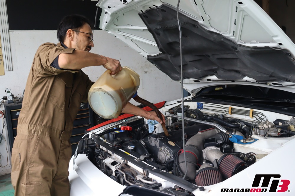 エンジンオイルを入れます。