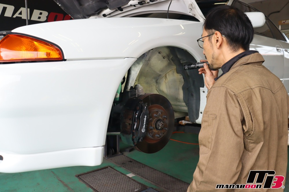 足回り、ブレーキ周りのチェックをします。