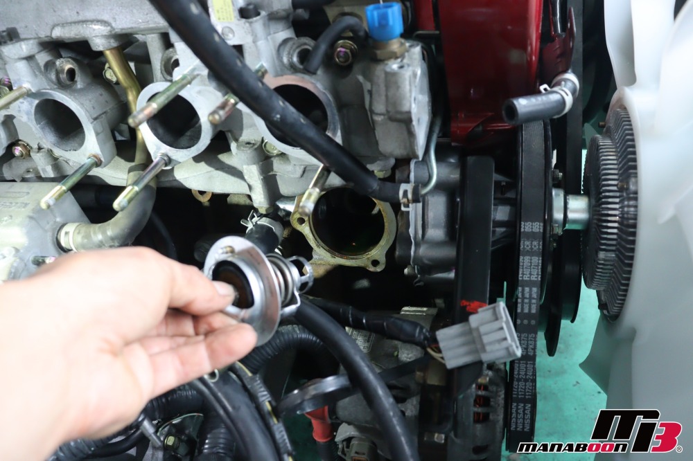 スロットルを戻して、ガスケットを交換します。