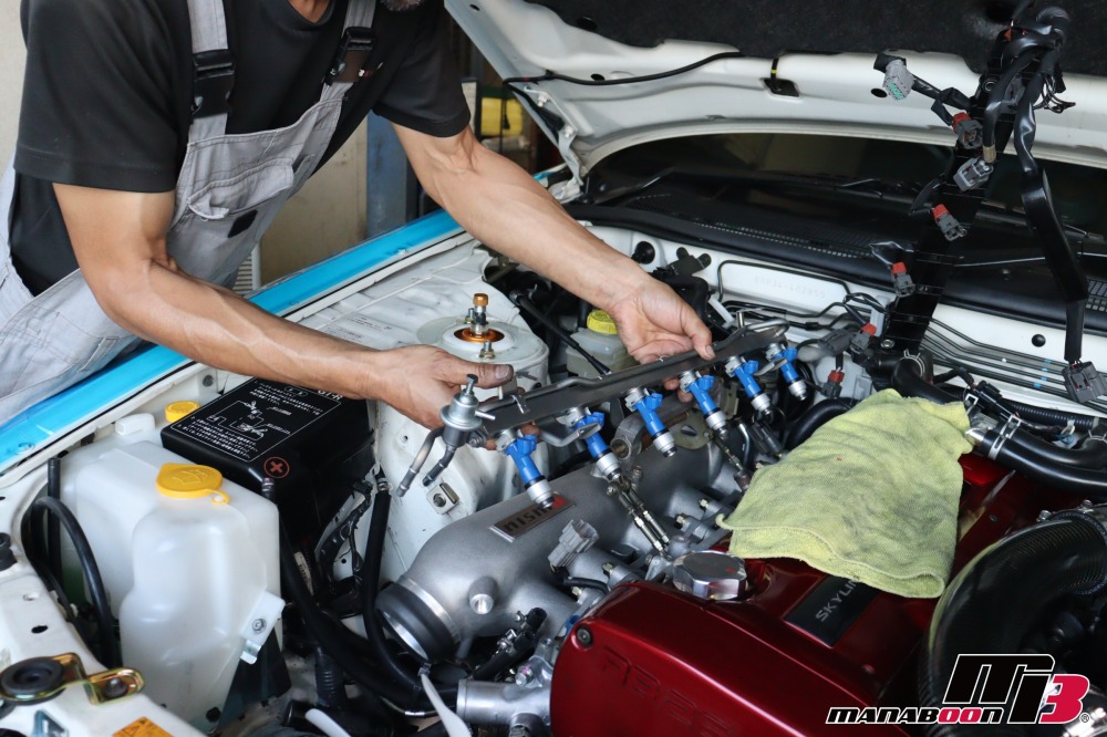 ニスモデリバリーパイプ、インジェクターを取り付けます。