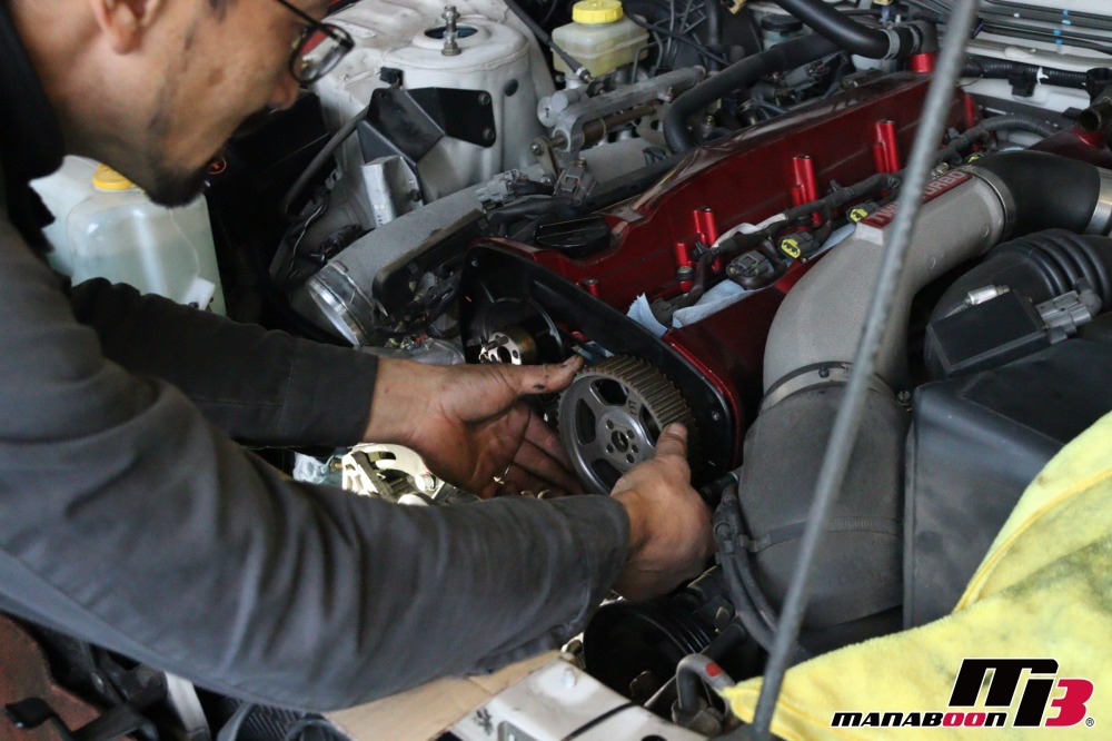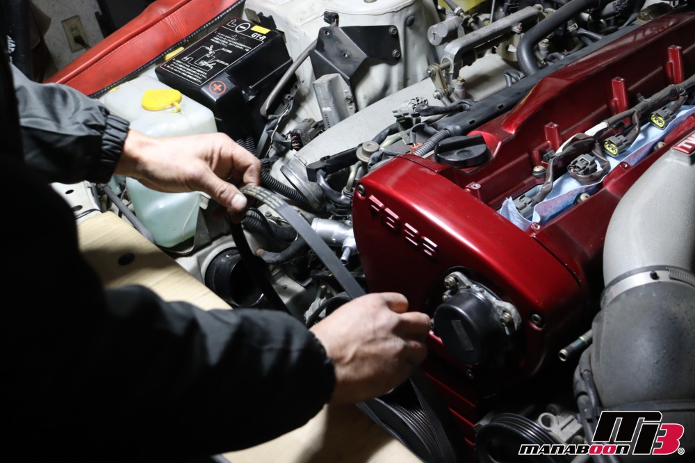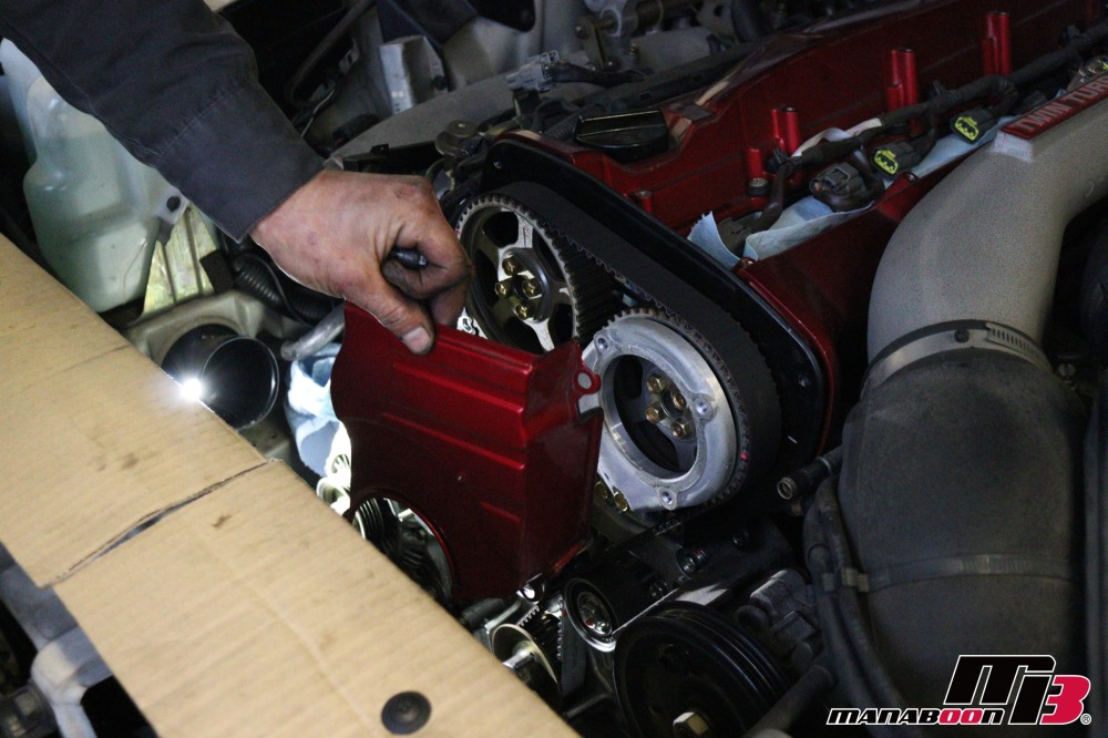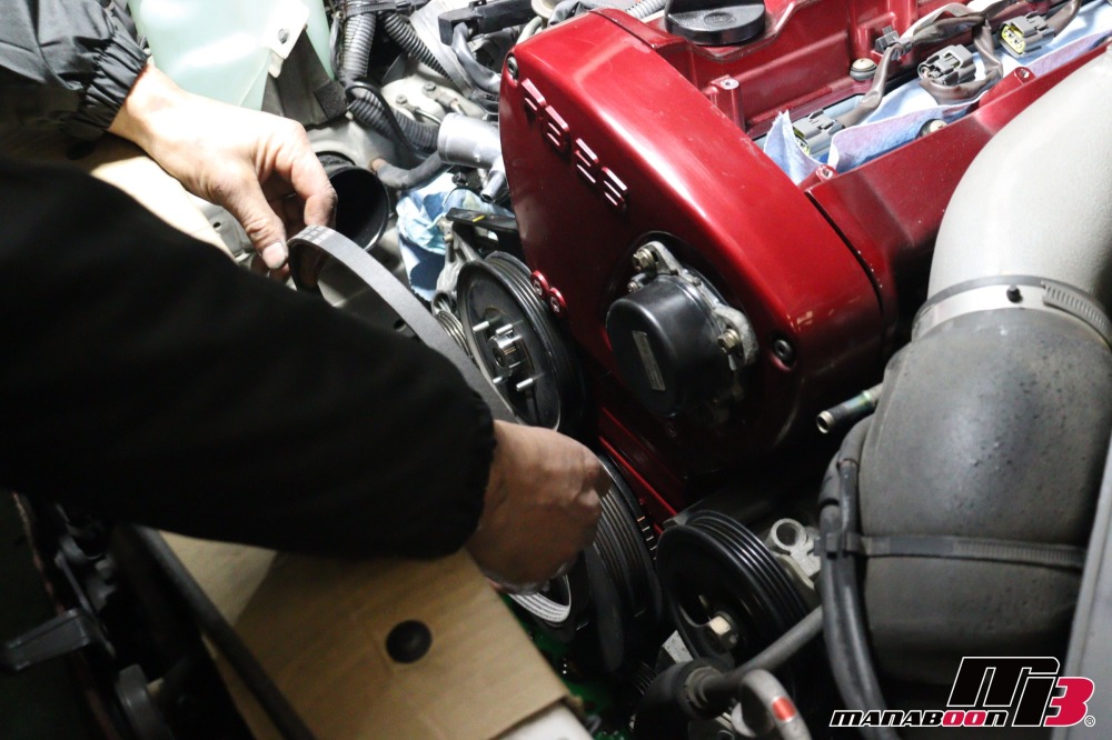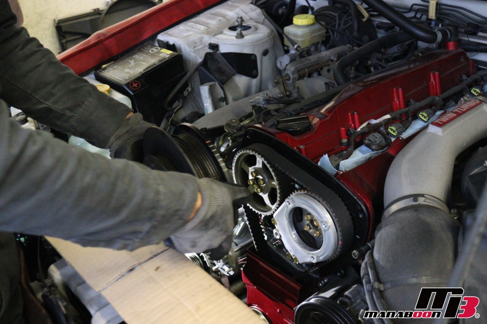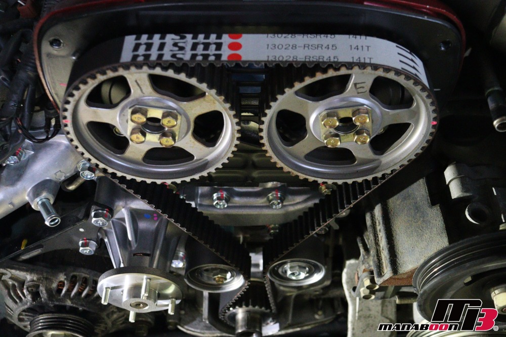 ニスモタイミングベルトを取り付けます。