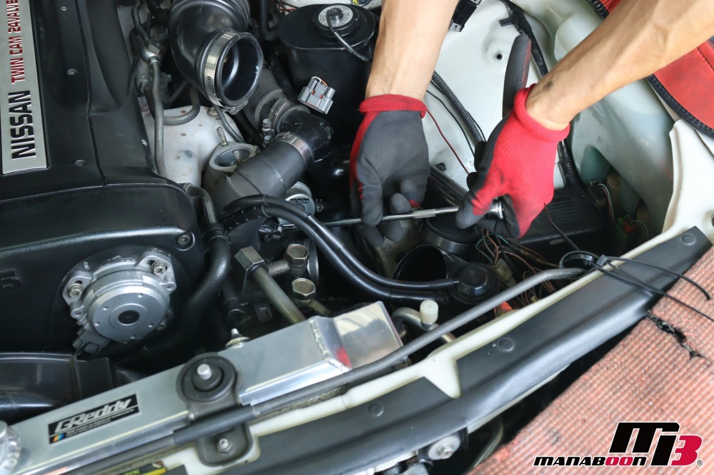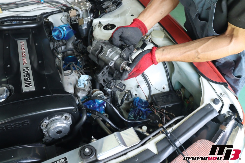 【BNR32】スカイラインGT-Rのパワステポンプ・チューブ交換です。① | メンテナンス | MANABOON