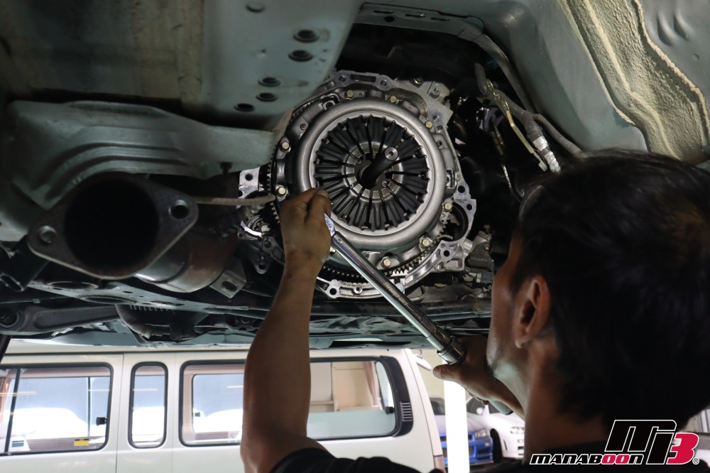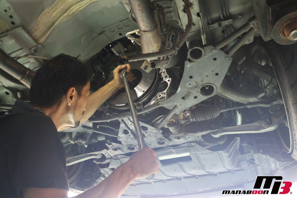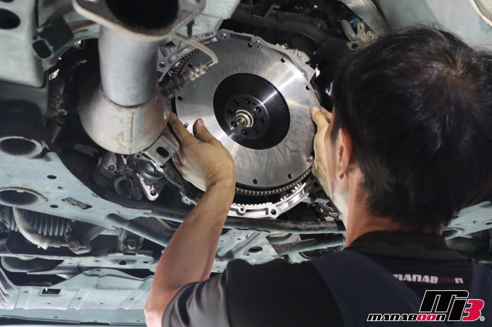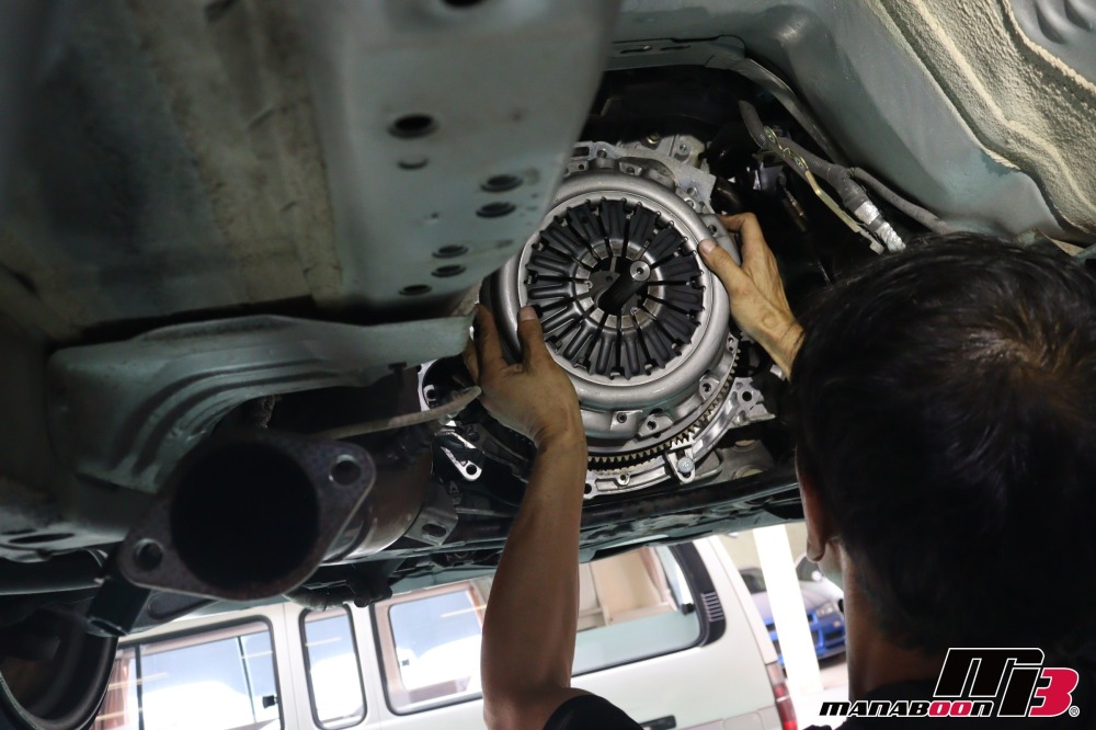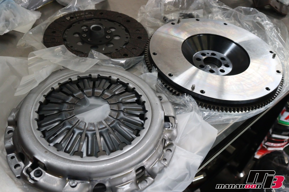 前回に続き、Z34のクラッチ交換を行います。取り付ける、ニスモクラッチディスク、カバー、軽量フライホイールです。