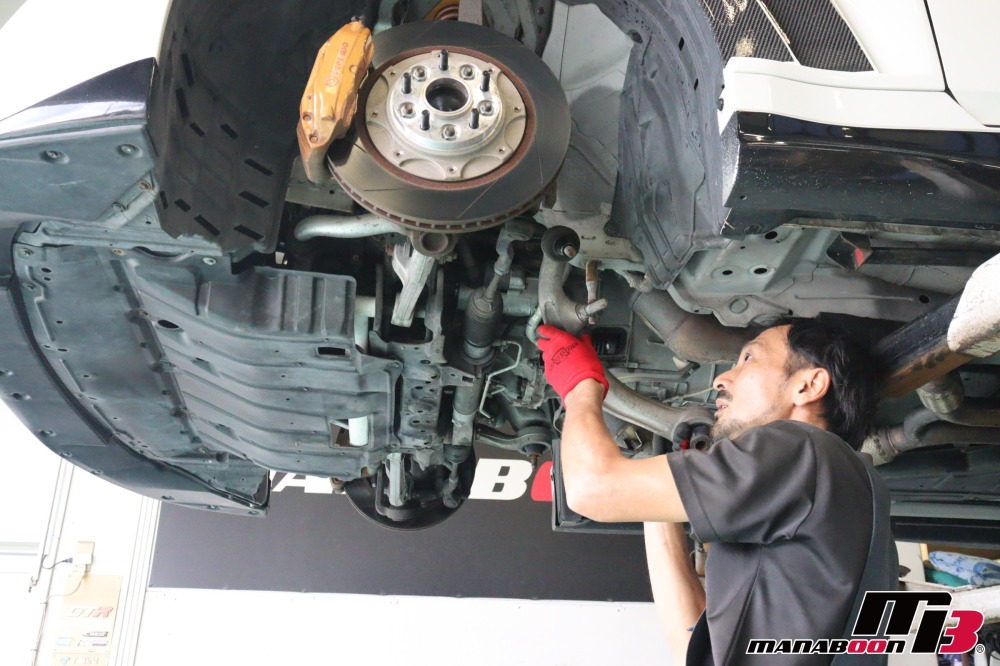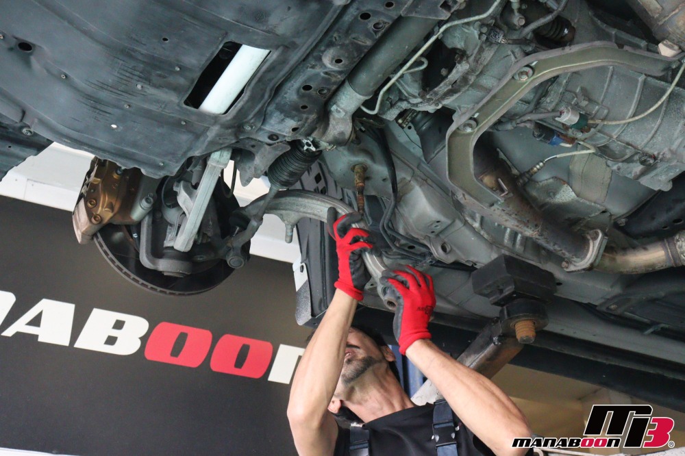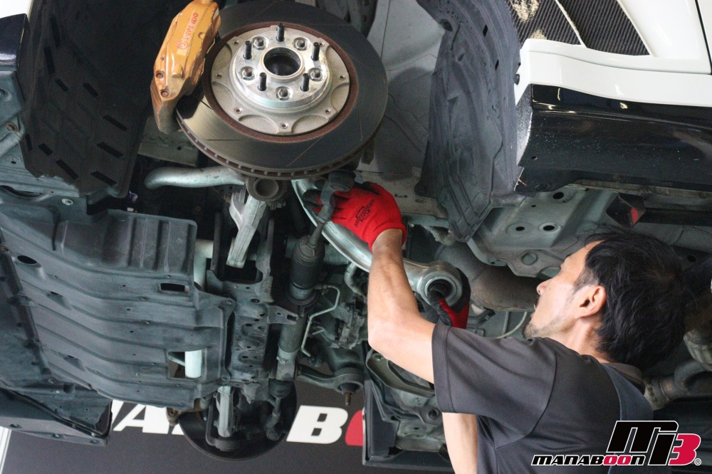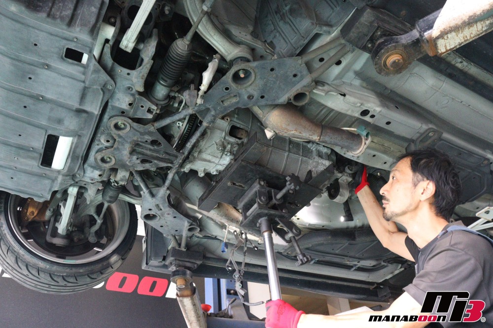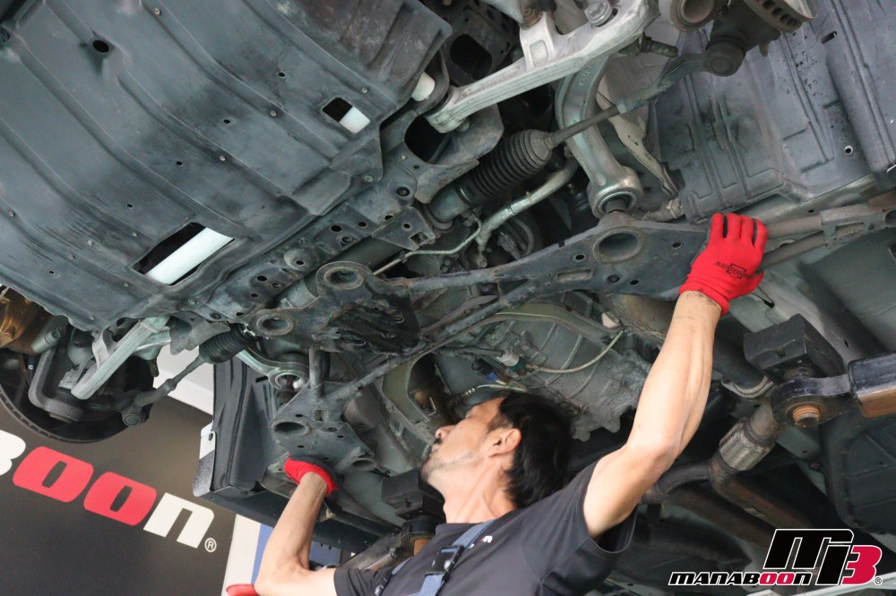 テンションロッドの交換をします。交換する、ピロテンションロッドです。