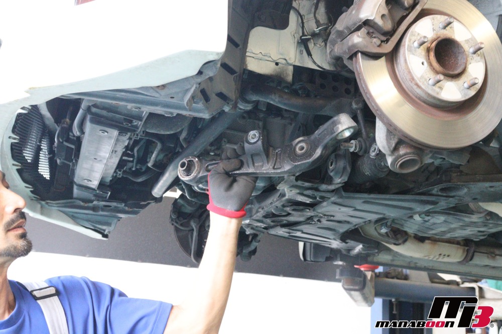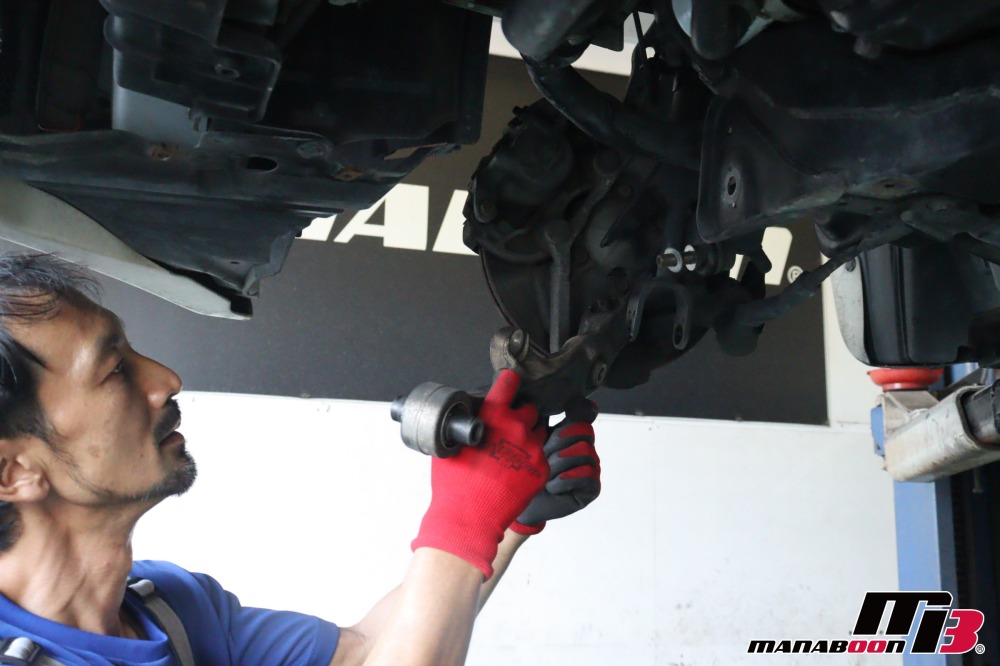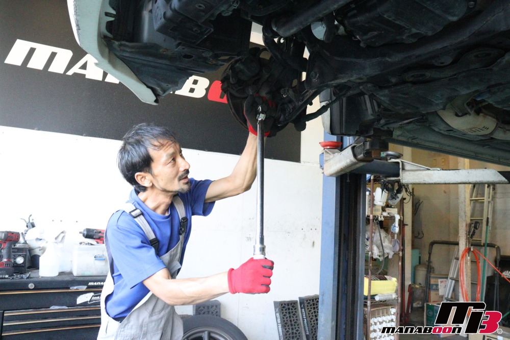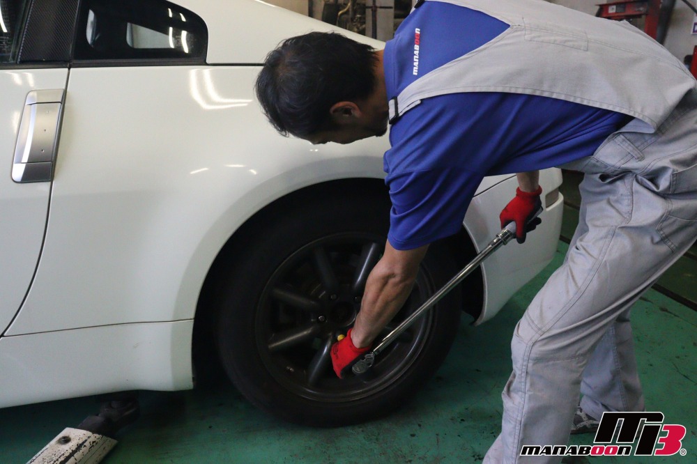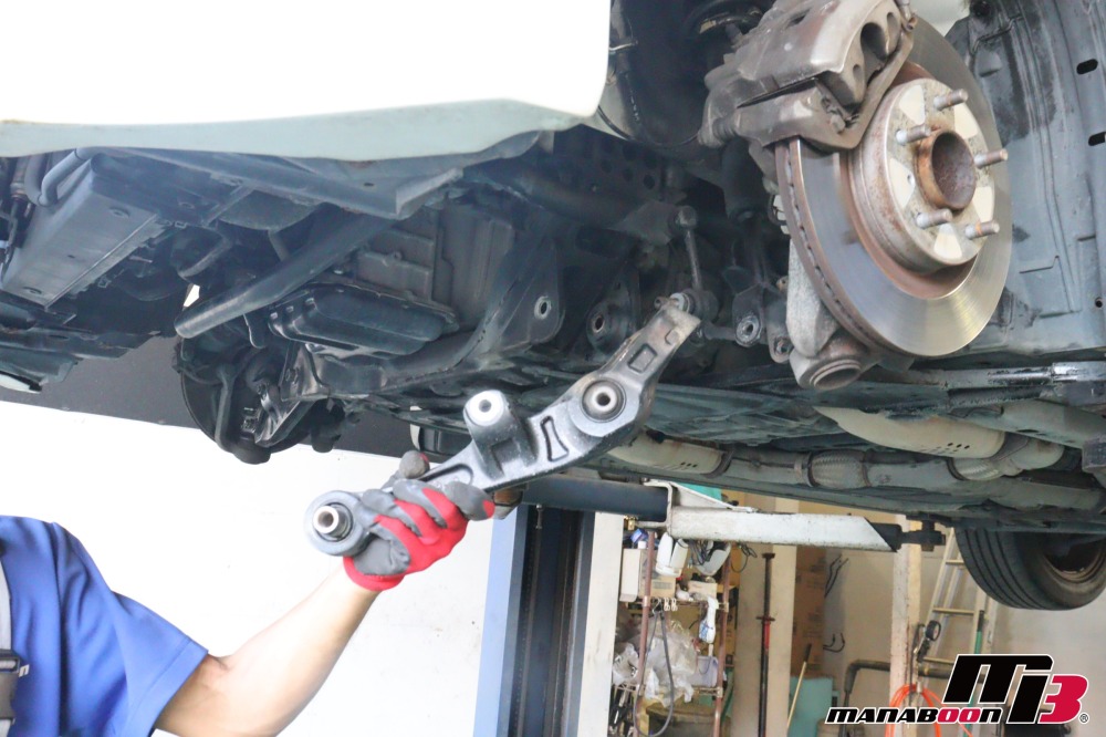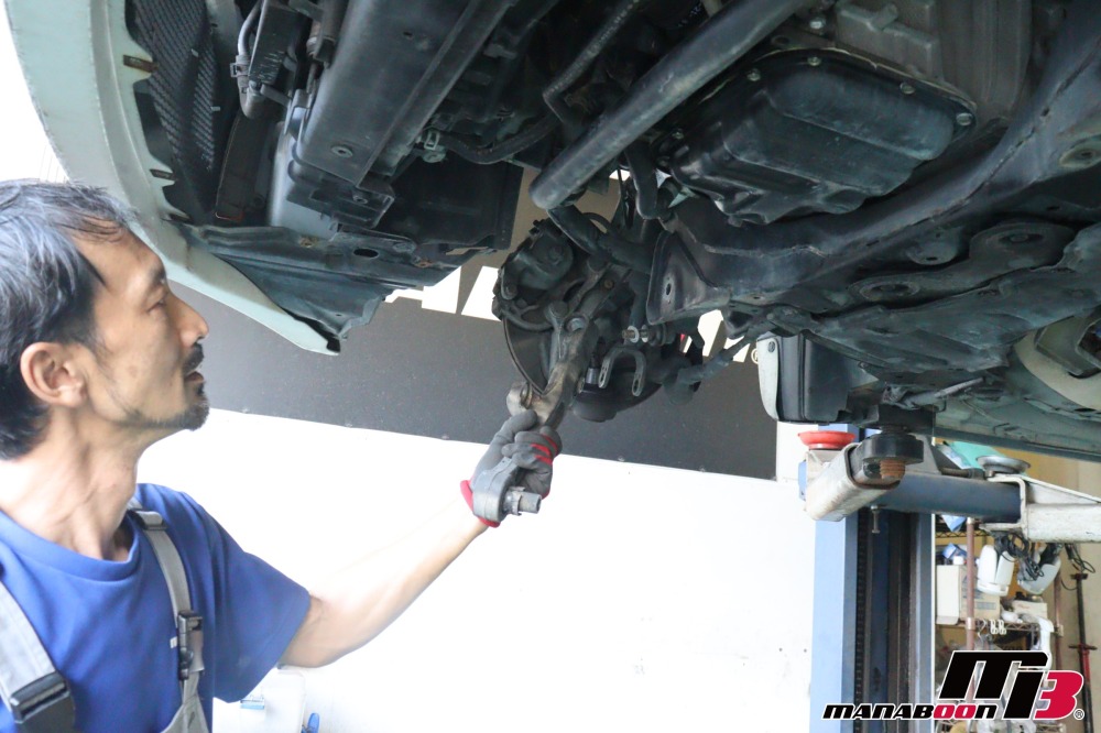 前回に続き、フェアレディZの車検整備を行います。ロアアームを外します。