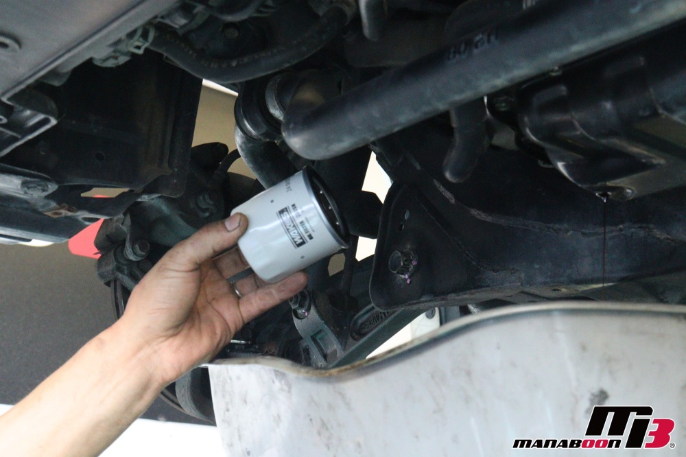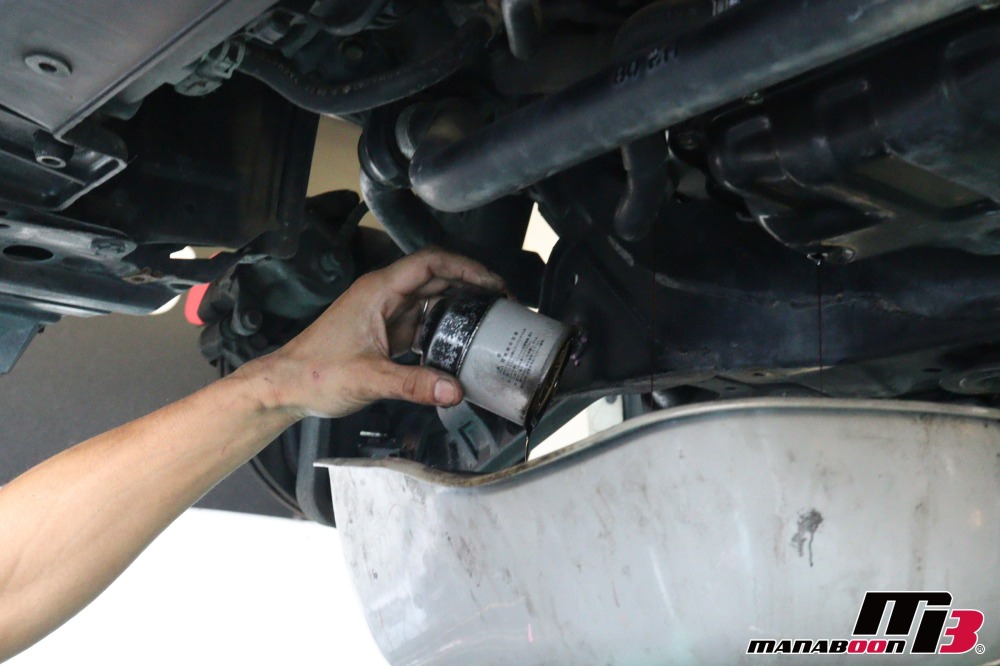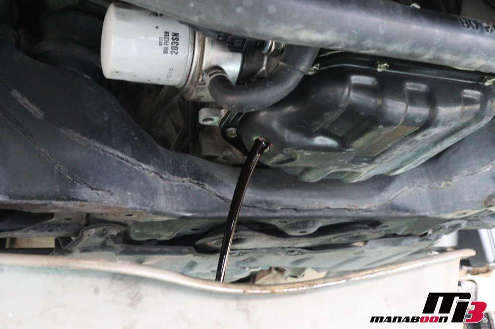 エンジンオイルを抜いて、フィルターを交換します。